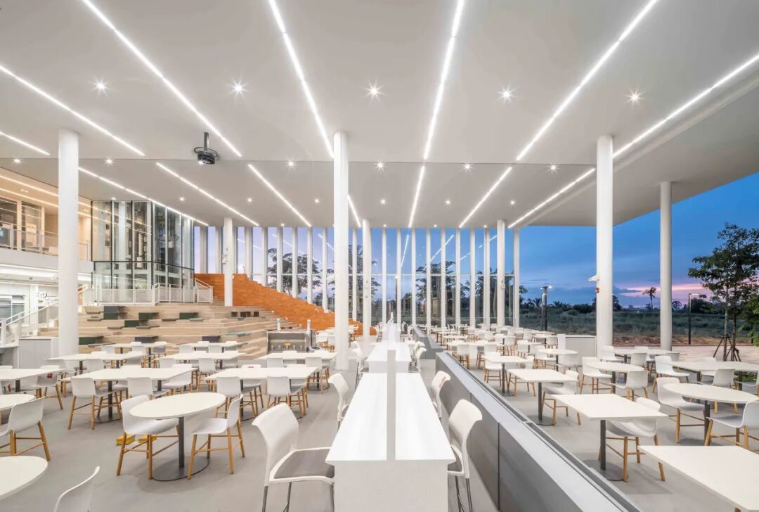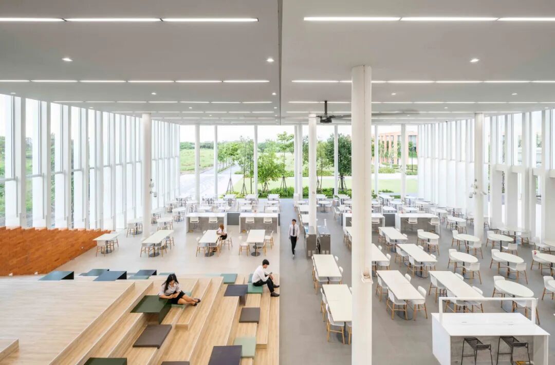 With a focus on creating collaborative spaces for students and teachers within the natural environment, users can gain knowledge, exchange ideas, and create new innovations. This emphasizes the concept of “Knowledge is Everywhere” not just in the classroom. There are also spaces that support the latest technology in learning, as well as various areas that can be easily adapted to accommodate a wide range of uses.
