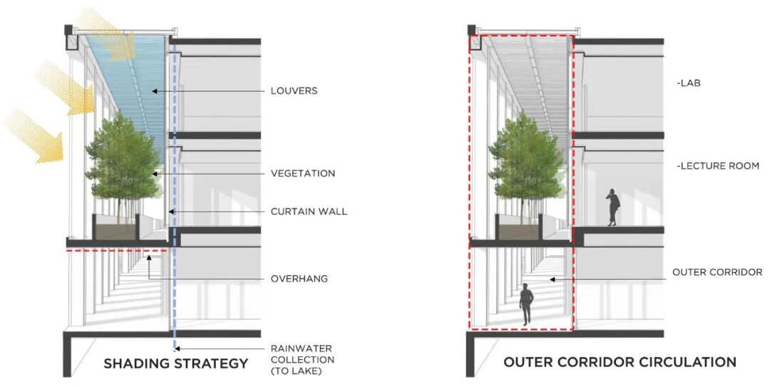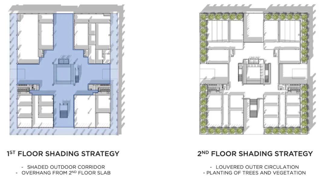 Since the project's inception, the concept of passive design in architecture is showcased, from Master Planning to architectural design, M&E systems, and landscape architecture. All of this facilitates the study and connection with nature. Focusing on sustainability and preserving nature, careful planning of the building uses and orientation reduces heat and minimizes the need for air-conditioned spaces.