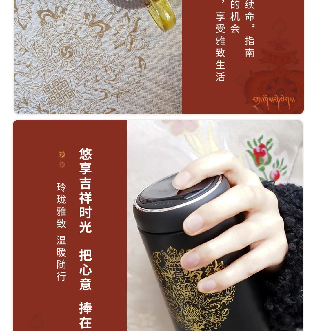 如今,扎什吉彩将吉祥符号在现代设计艺术中巧妙延伸,赋予吉祥文化符号以新的生命力这个冬天,我们为您奉上一份无法抗拒的冬日伴侣——吉祥八宝保温杯,祁佑安康,暖心暖意