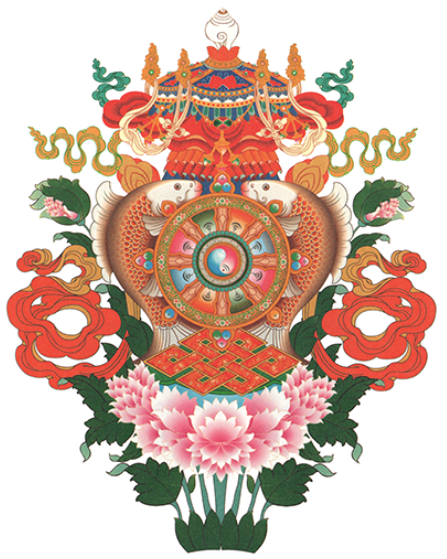 意义深厚的“吉祥八宝”是藏族吉祥文化中的典型图案,作为单一图案,每个图案有着不同的内涵,而组合在一起有着吉祥之意。它是反映藏族吉祥文化的缩影,深入到藏族民俗文化中,富有深刻的文学、艺术价值。