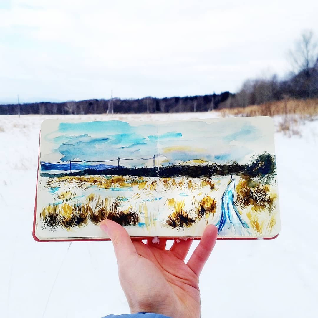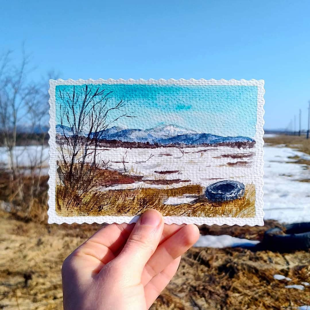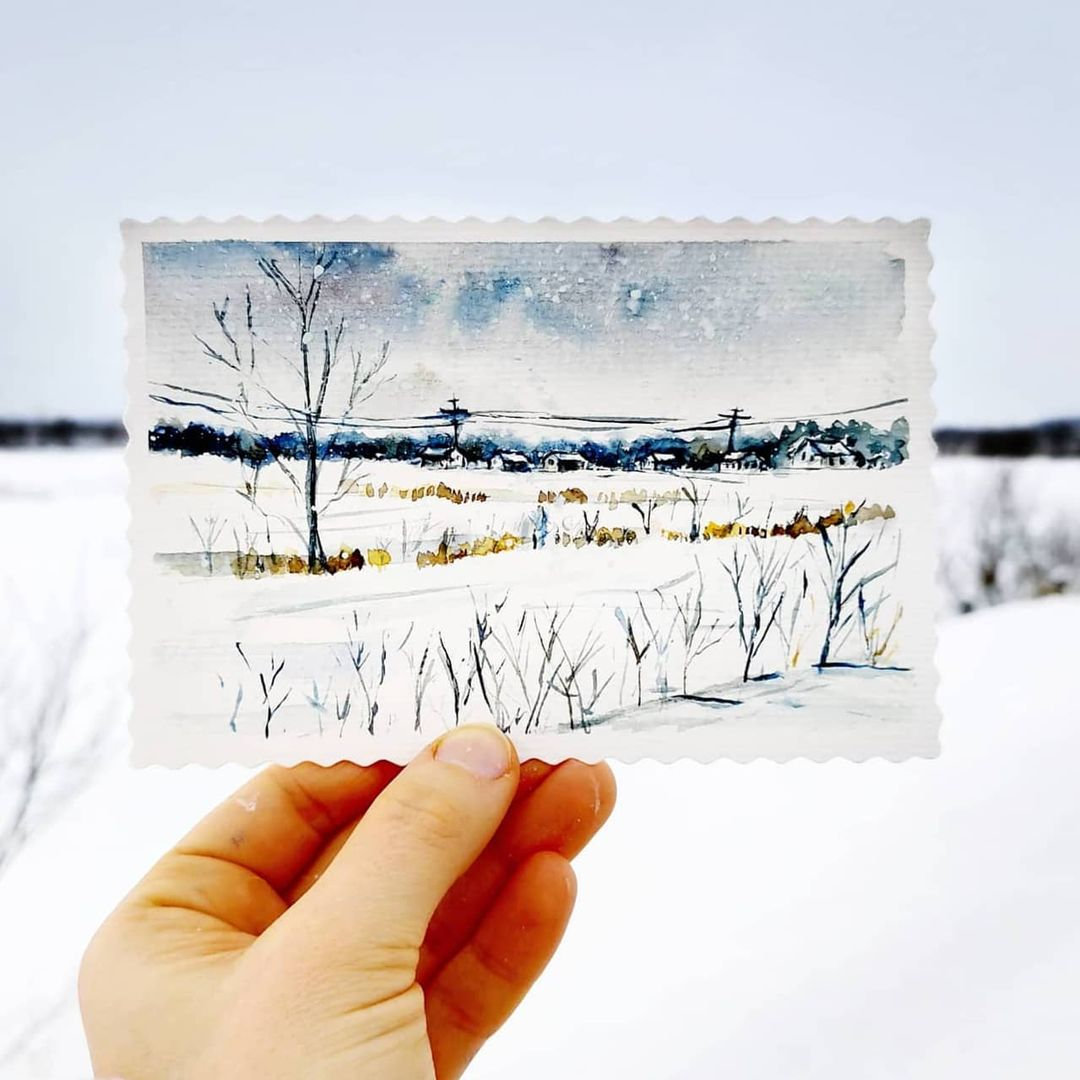 雪中水彩画作品 | 俄罗斯插画师 САХАЛИН