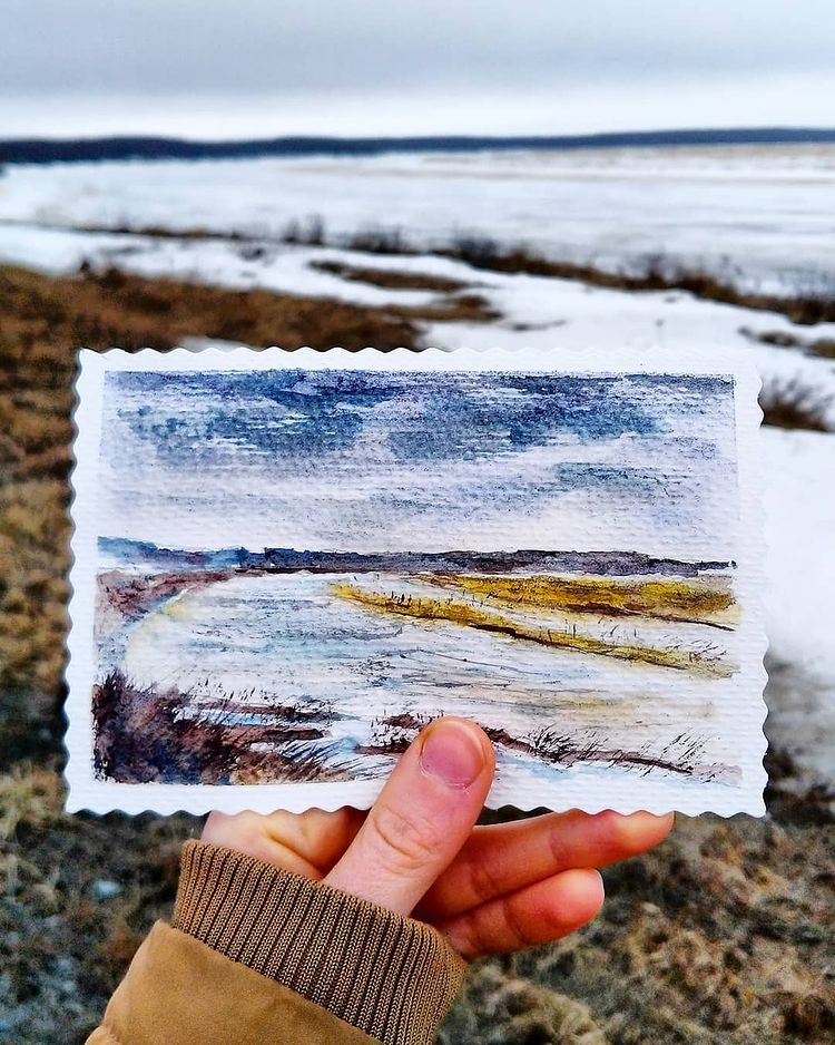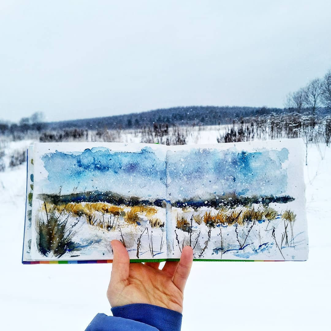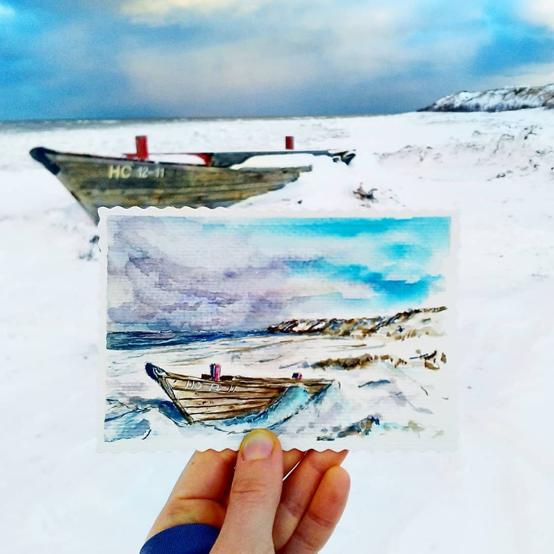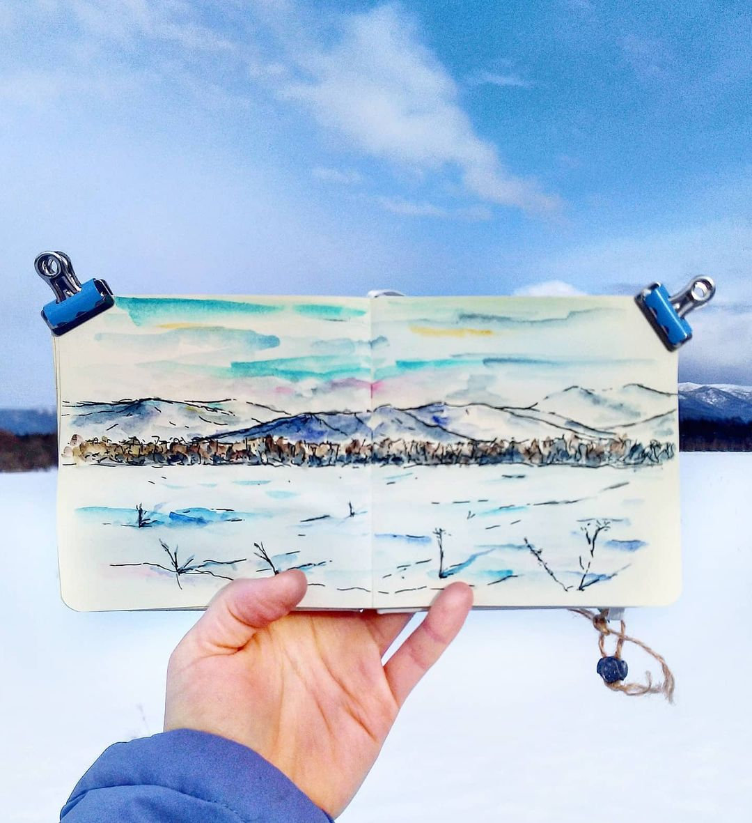 雪中水彩画作品 | 俄罗斯插画师 САХАЛИН