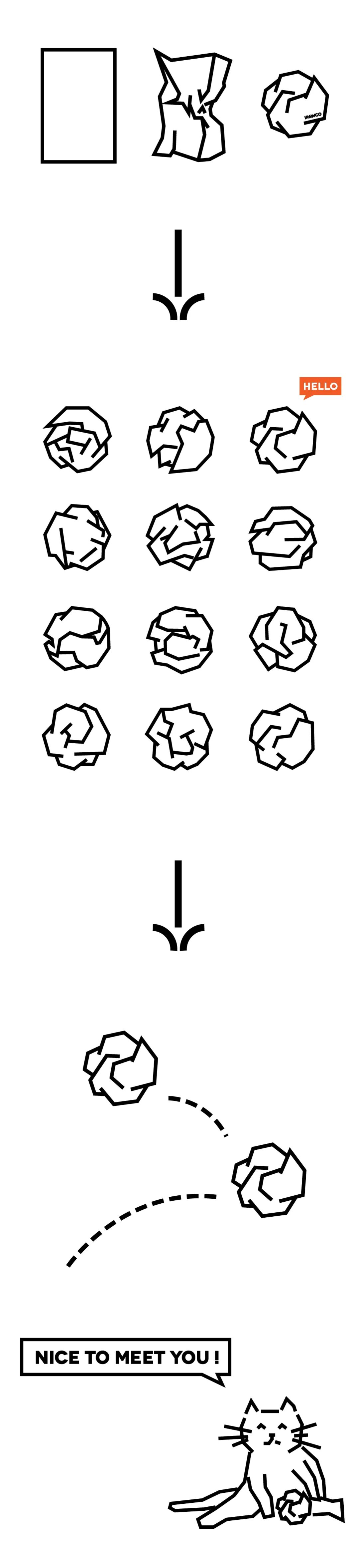 IPAWCO的核心理念永远都是,亲切、自然、随性,让每一只宠物都能成为你最贴切的伙伴。一直以来我们都在寻找一种思维逻辑来改变现有的宠物品牌,不可避免的说,打破这种定向思维一直都是品牌人所坚持的事情。不采用传统具象的小猫小狗,那么用什么才能引起每一位主人的共鸣?是的,球行物体永远是与宠物的互动焦点。同时球形物体也是品牌、宠物主人、与宠物之间的一个情感载体。对于宠物来说无论你今天是什么状态都不会影响宠物来贴近你,一个纸团可以让故事越来越有趣。同时,这也是我们此次IPAWCO设计的一个核心概念点。那么,我们的故事,从一个纸团开始。