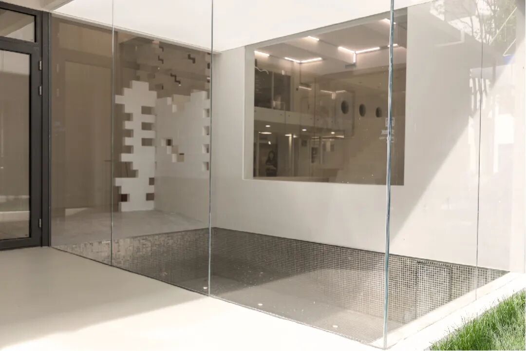 整个宠物泳池,金属马赛克泳池与三面透光的玻璃可以让你跟宠物体验到度假的乐趣。