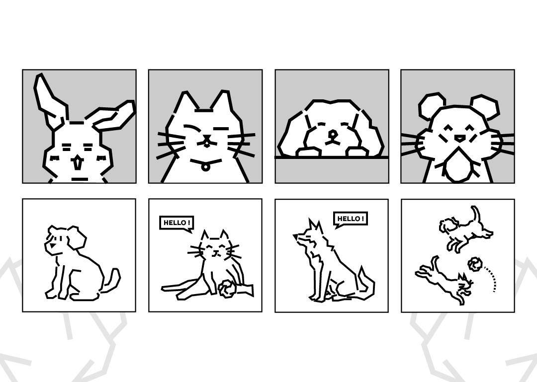 为了提取此次的图形载体,我们对纸张进行了多次的折叠观察对比,最终我们通过其硬朗的结构提取出主要线条的轮廓。通过使用线条弯曲的节奏变化,以及这种强烈的几何感,抽象的表达这次纸团的品牌理念。同时品牌名称选择了端正的英文文字这更能体现品牌对与宠物领域的专业性。