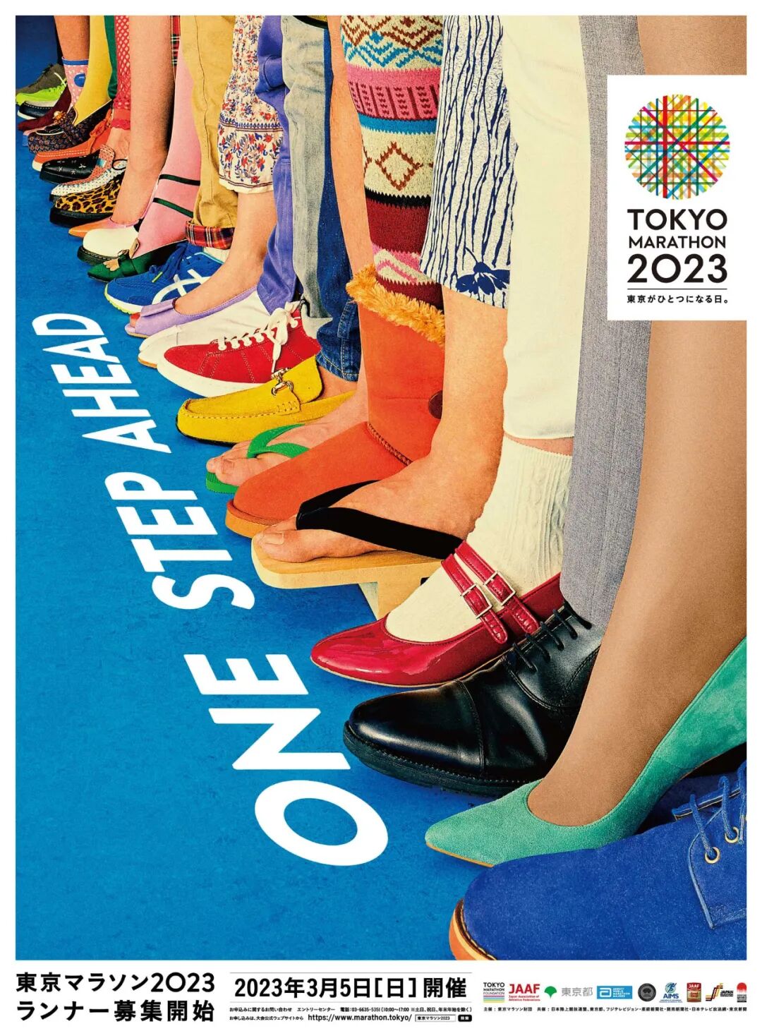 近日,2023东京马拉松官方发布了主视觉海报,2023年主题:向前一步。