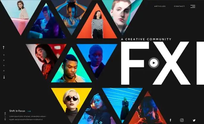 通过将黑白或者彩色的方正小格排列交错而产生视觉效果,让整体设计看上去更加的醒目。在整体画面中也可以添加一些弹窗、渐变、棋盘格的变形等元素,使设计带来一定的视觉冲击力。
