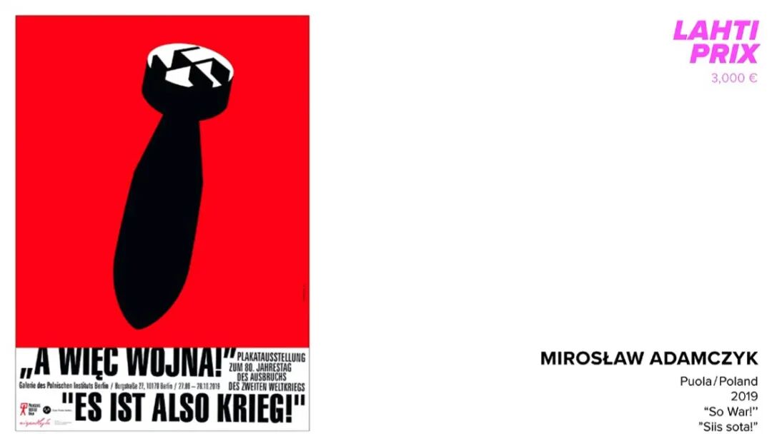 拉赫蒂国际海报三年展是世界著名的平面设计大赛和展览,自1975年以来一直在芬兰拉赫蒂举行,被誉为世界五大海报展之一。