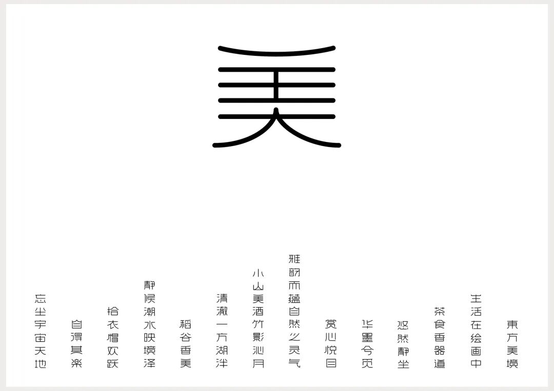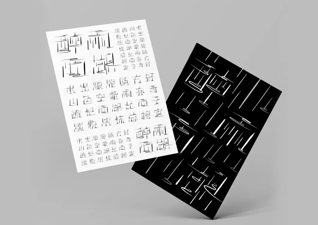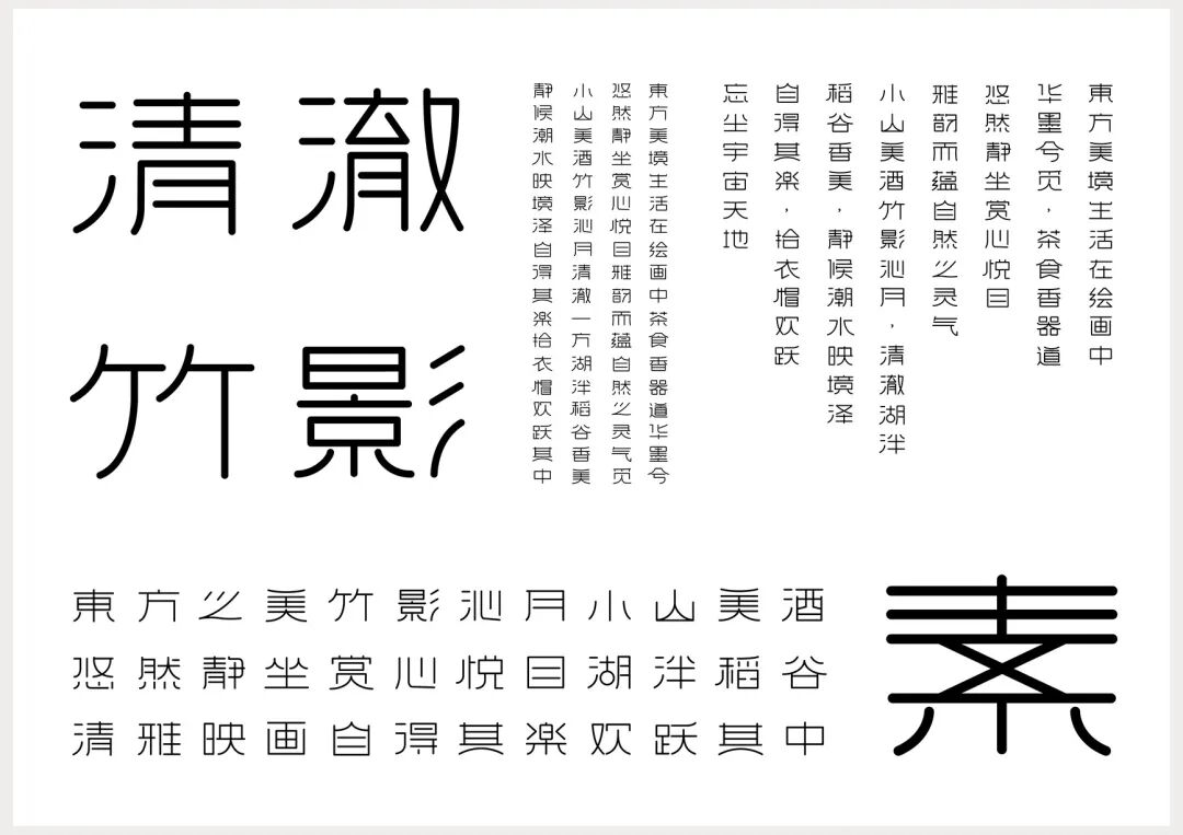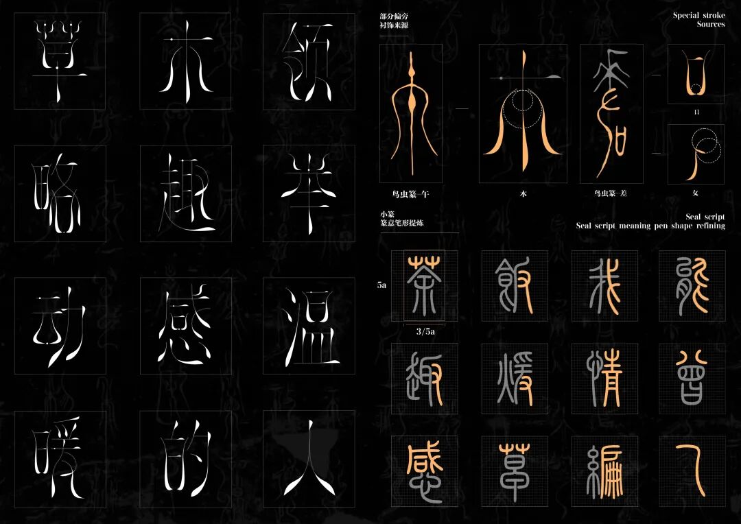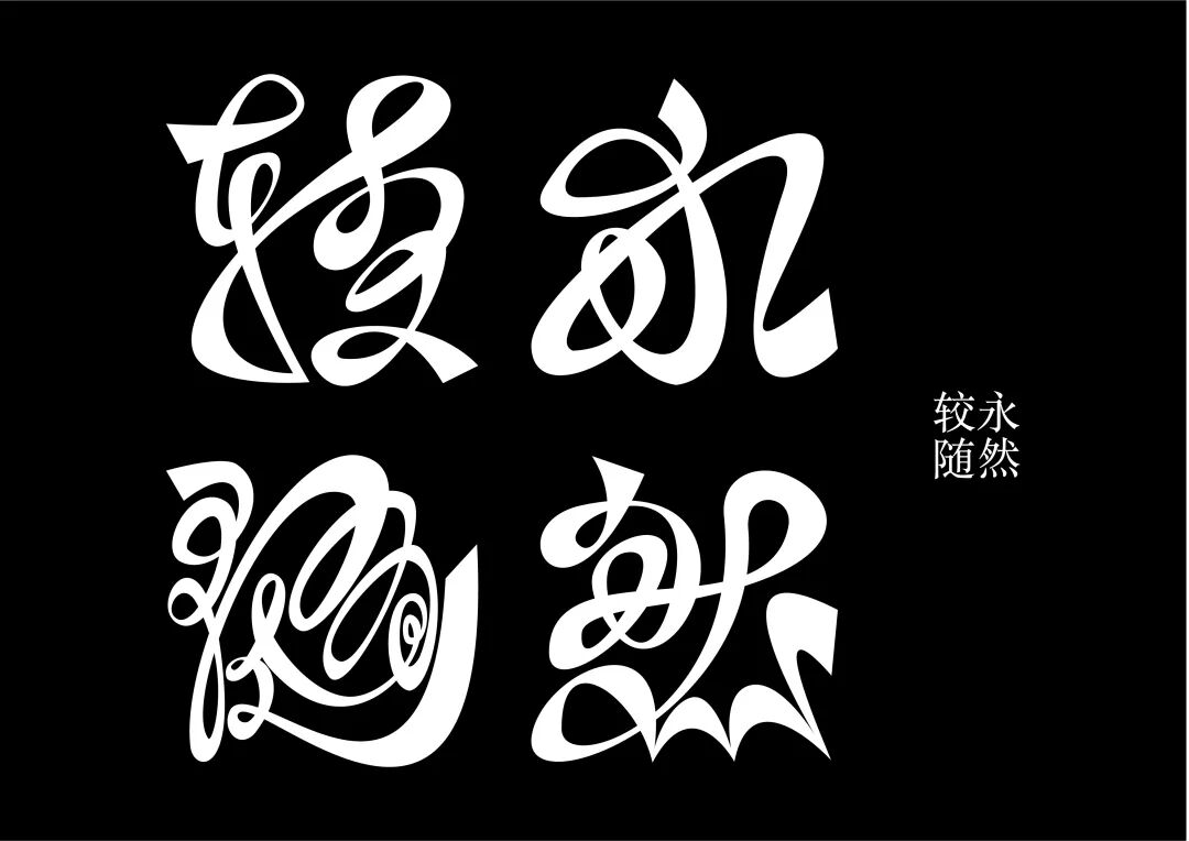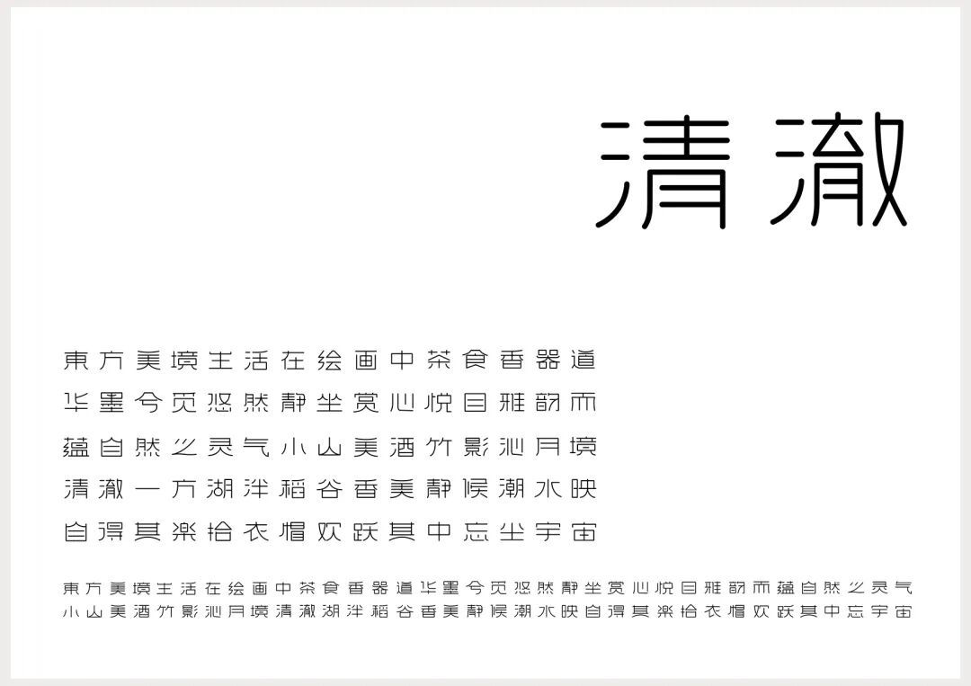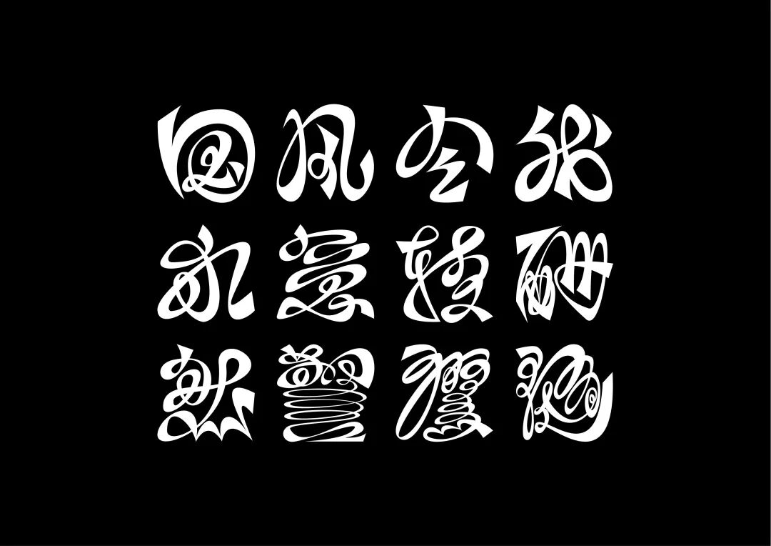 The font is inspired by the "one-stroke drawing" I played in my childhood. The style is combined with the traditional Chinese "charm" drawing method to highlight the softness and beauty of the combined strokes of Chinese characters. At the same time, sharp strokes are also integrated into the starting strokes and turning points. In terms of the overall shape, the design idea of "drawing to rule characters" is determined, which not only retains the necessary identification of characters, but also combines some strokes with cursive script to simplify the complex, so that the overall vision has a sense of flexibility, softness and striking simplicity." In the structure of the text, the "square" characteristics of Chinese characters are deliberately highlighted, and each font is expanded into a square grid by means of denaturalization and appropriate stretching, so as to make the overall vision more unified.