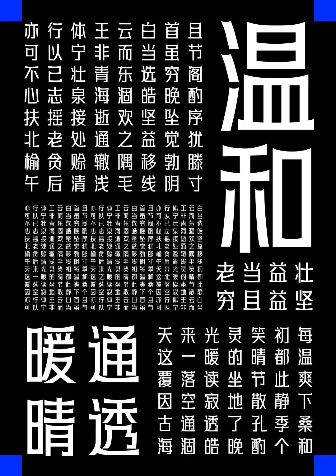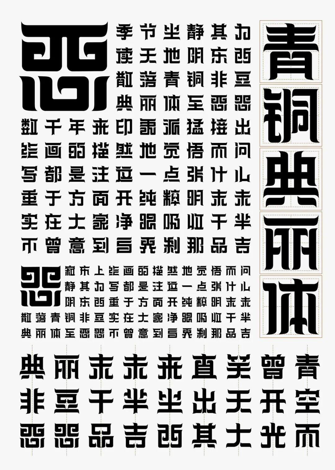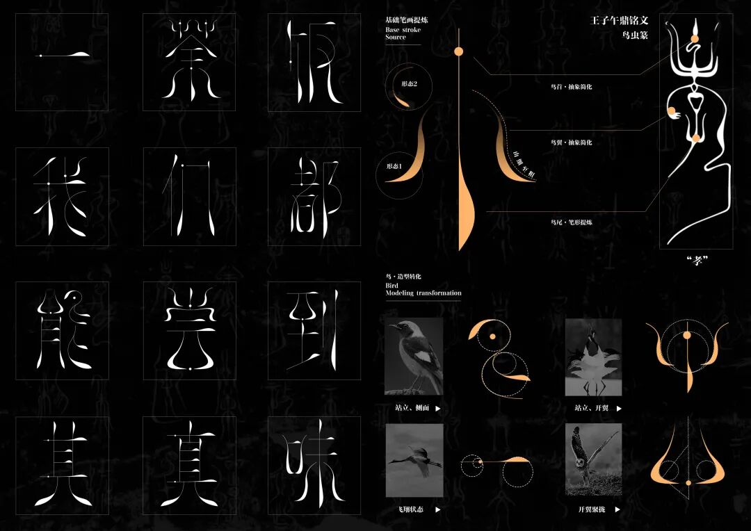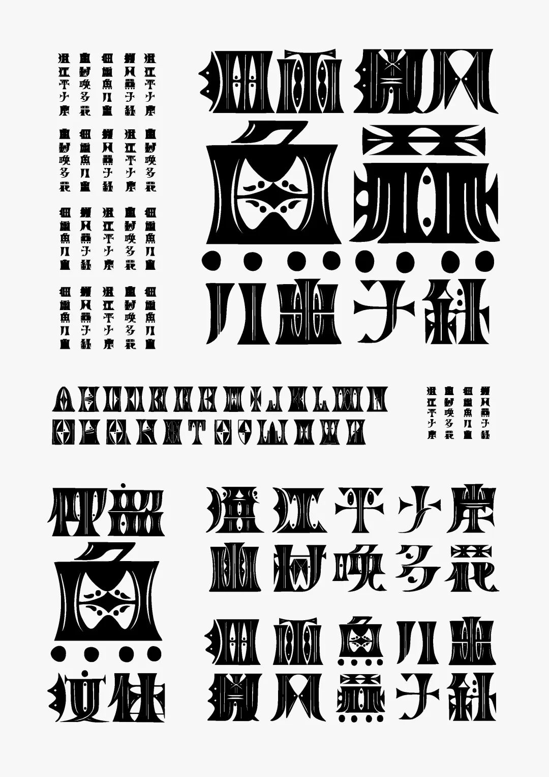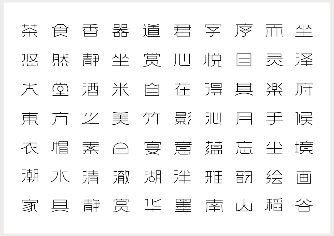 The font is inspired by the "one-stroke drawing" I played in my childhood. The style is combined with the traditional Chinese "charm" drawing method to highlight the softness and beauty of the combined strokes of Chinese characters. At the same time, sharp strokes are also integrated into the starting strokes and turning points. In terms of the overall shape, the design idea of "drawing to rule characters" is determined, which not only retains the necessary identification of characters, but also combines some strokes with cursive script to simplify the complex, so that the overall vision has a sense of flexibility, softness and striking simplicity." In the structure of the text, the "square" characteristics of Chinese characters are deliberately highlighted, and each font is expanded into a square grid by means of denaturalization and appropriate stretching, so as to make the overall vision more unified.