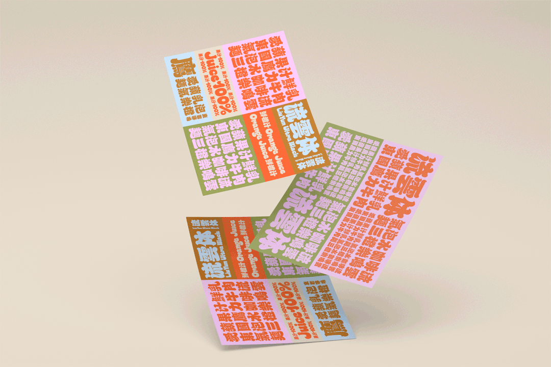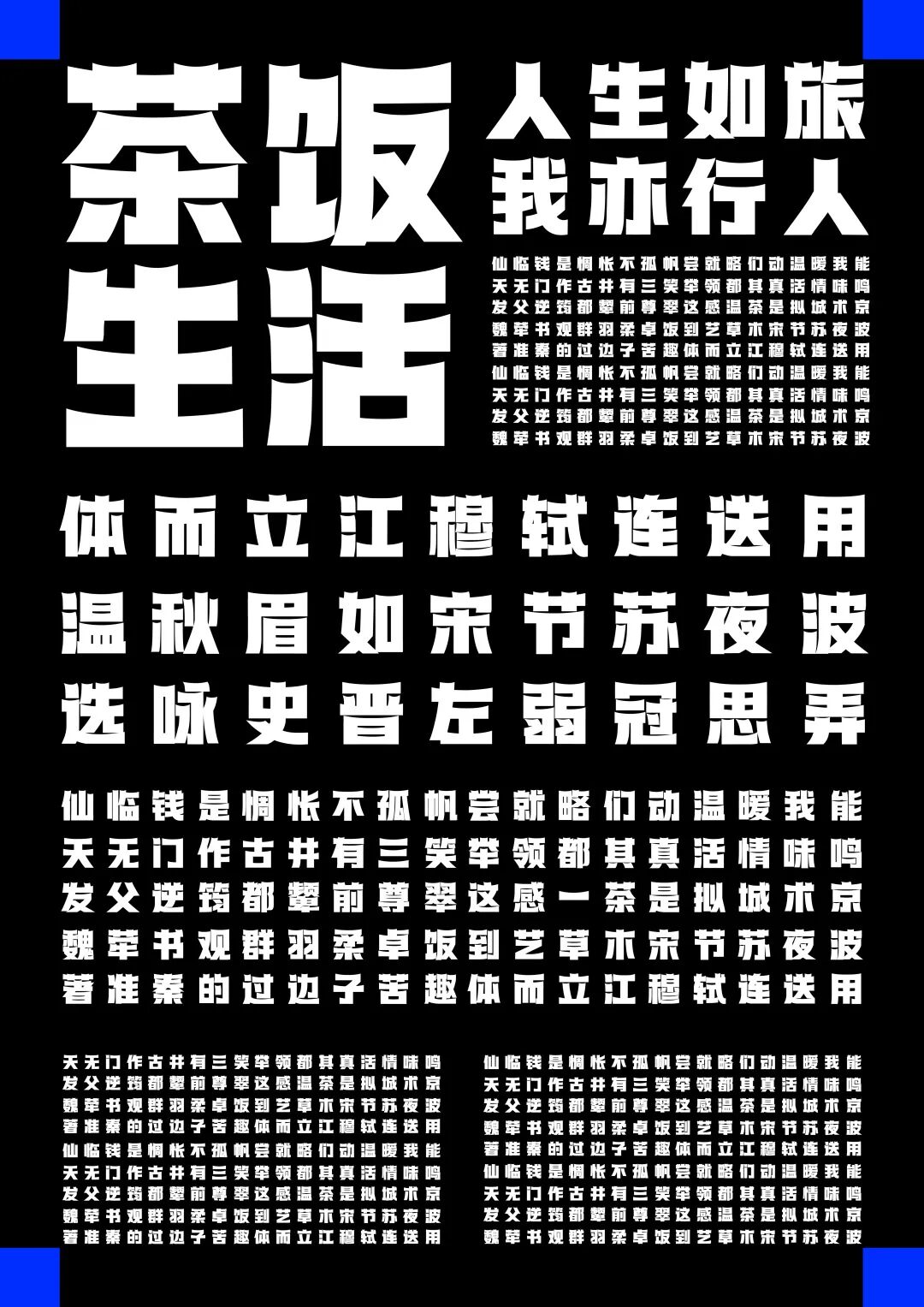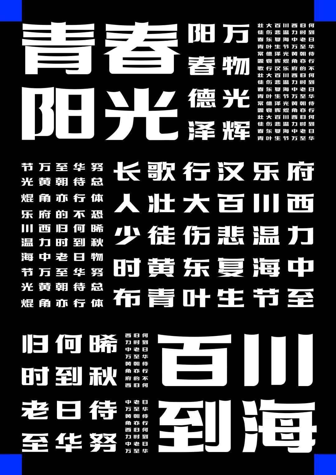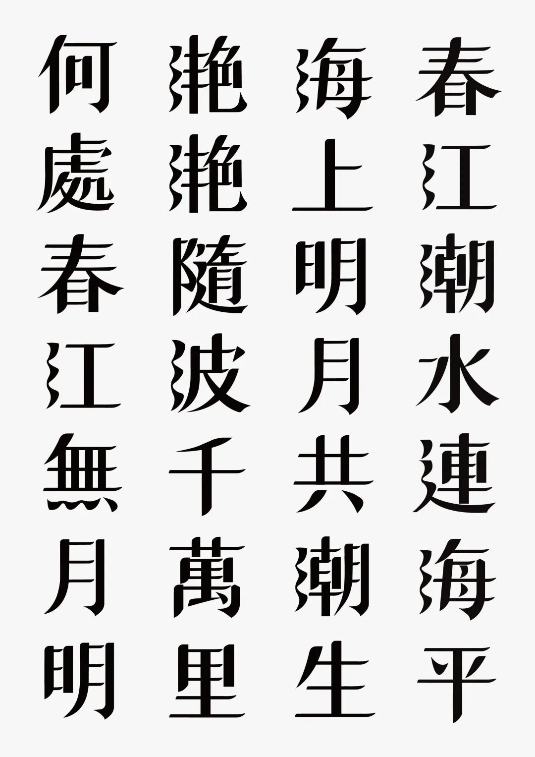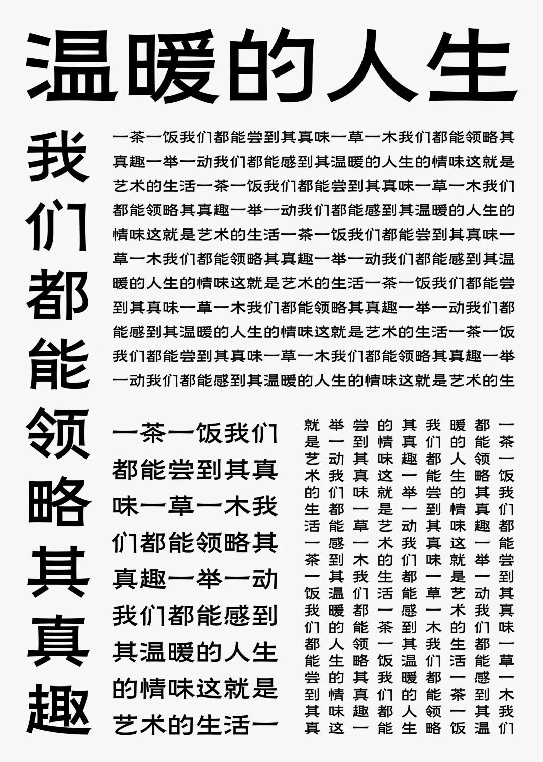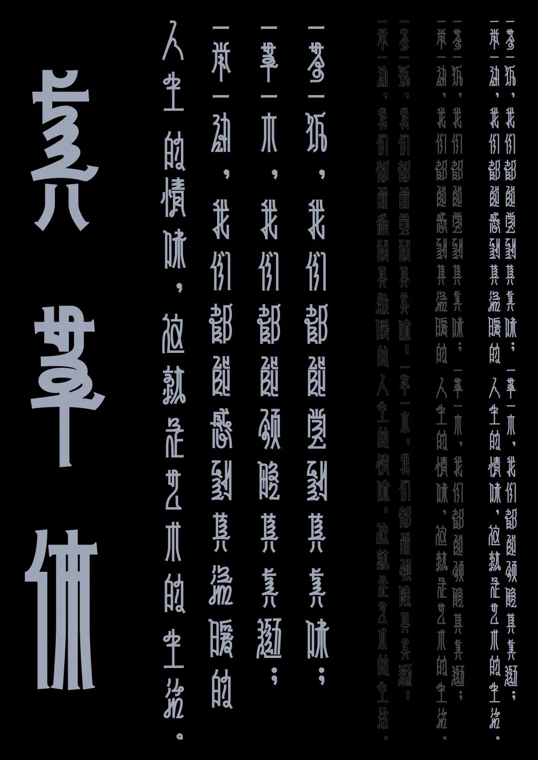 The font is inspired by the "one-stroke drawing" I played in my childhood. The style is combined with the traditional Chinese "charm" drawing method to highlight the softness and beauty of the combined strokes of Chinese characters. At the same time, sharp strokes are also integrated into the starting strokes and turning points. In terms of the overall shape, the design idea of "drawing to rule characters" is determined, which not only retains the necessary identification of characters, but also combines some strokes with cursive script to simplify the complex, so that the overall vision has a sense of flexibility, softness and striking simplicity." In the structure of the text, the "square" characteristics of Chinese characters are deliberately highlighted, and each font is expanded into a square grid by means of denaturalization and appropriate stretching, so as to make the overall vision more unified.