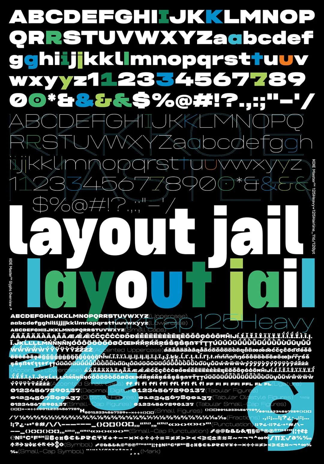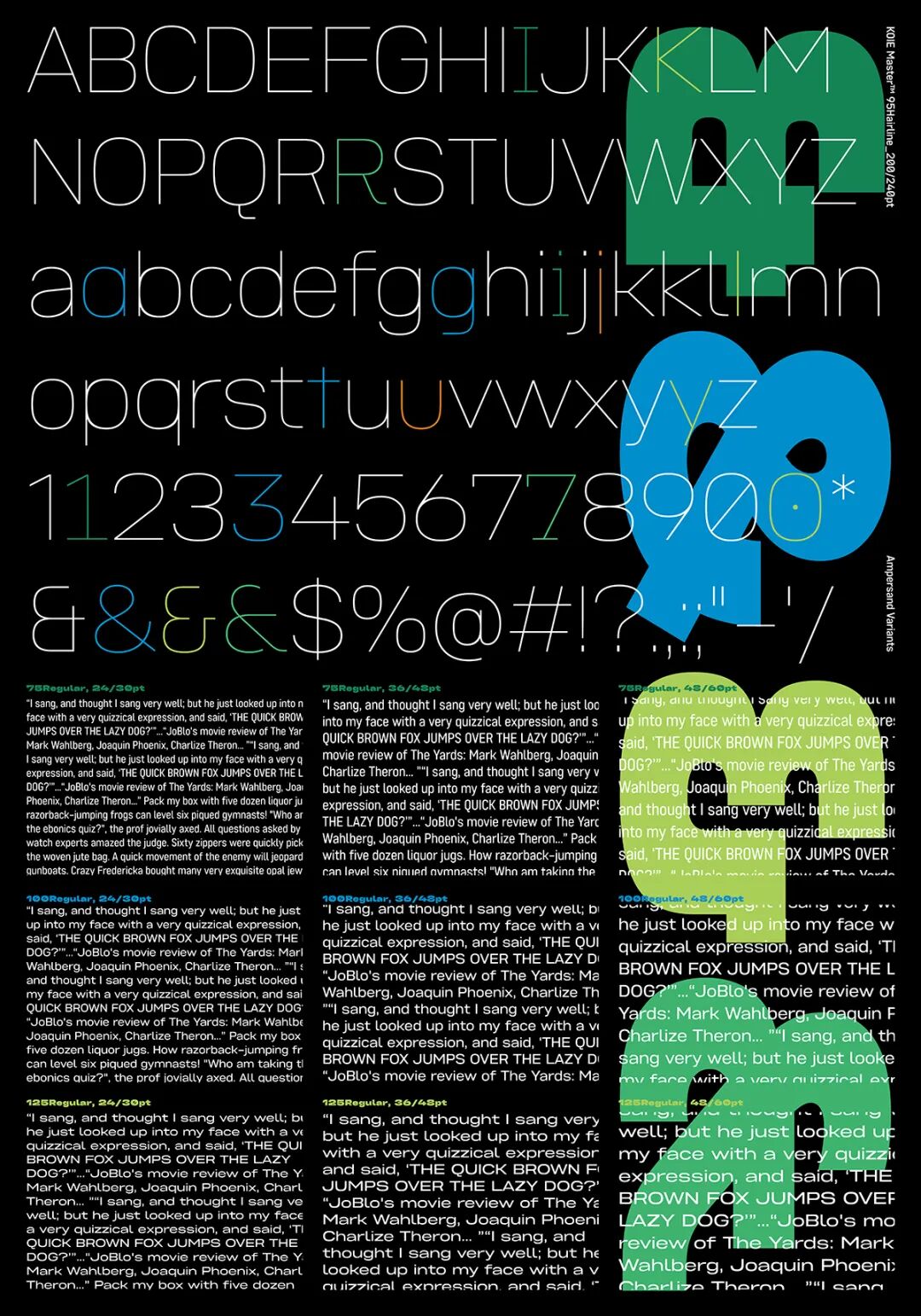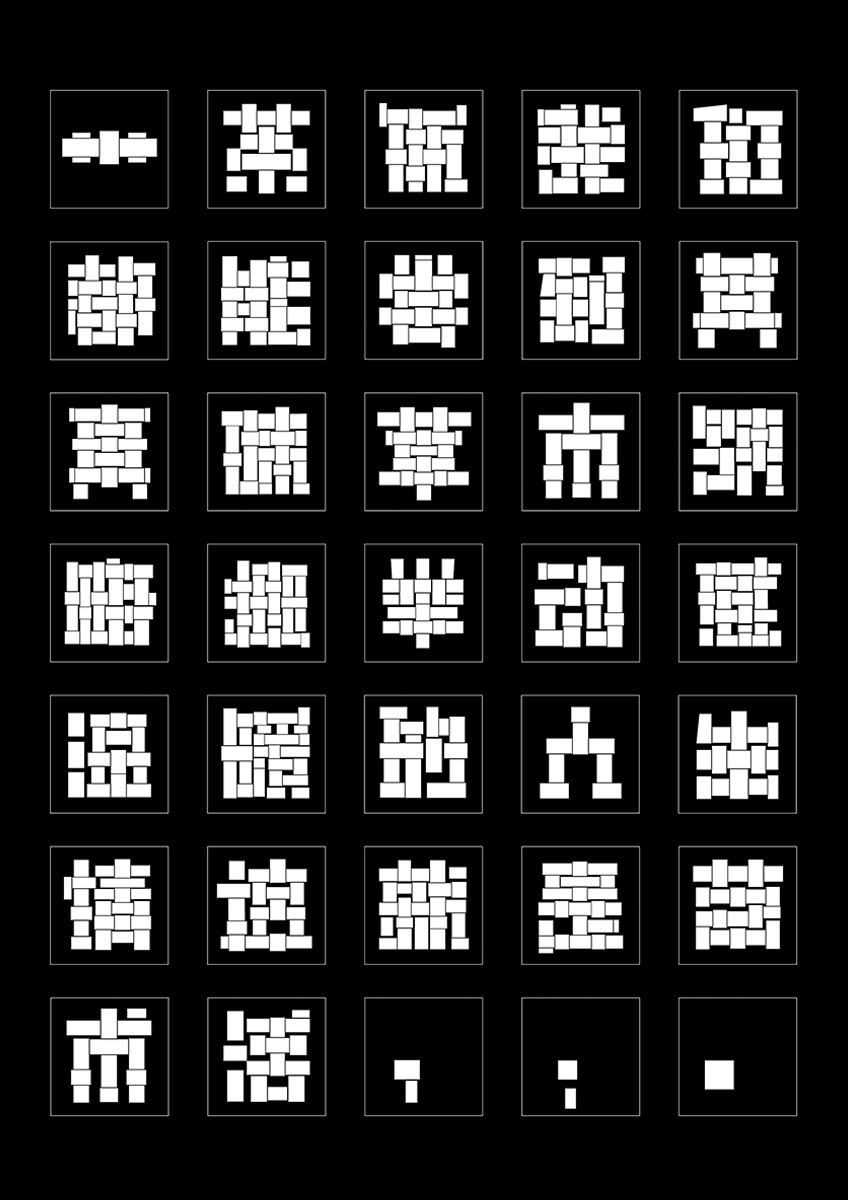 这套字体诞生于一个网格填充游戏,作为造字工具的网格由圆形和正方形组合而成。字体的生成保留了网格,拥有三个字宽和两种风格。