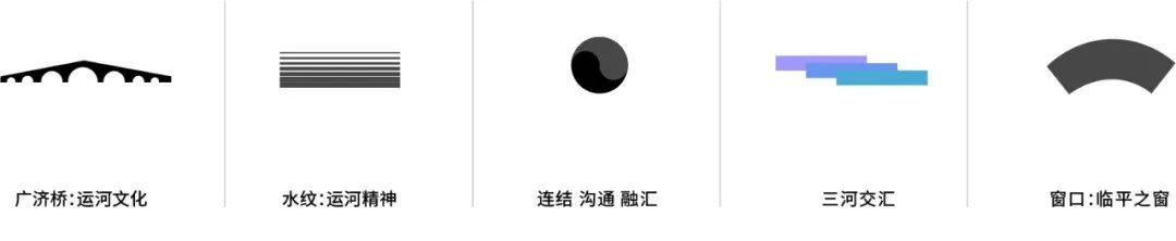 “临平之窗”如一幅山水画卷徐徐展开,不同层次的色阶交相叠印和渐进式的排布,蕴含了临平无数的“三大特色”,体现中国传统文化中极具代表性的“三生万物”哲学观念——