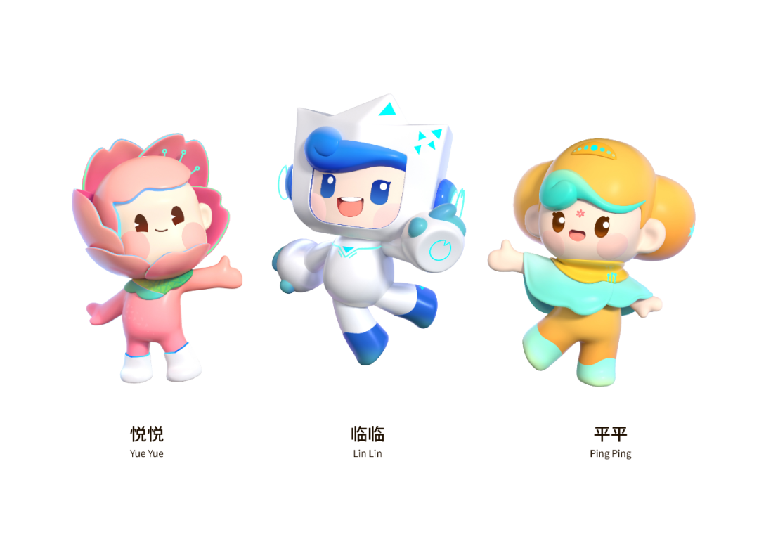 临平推出的城市形象IP共有三个:悦悦、临临、平平,吉祥物主要是以超山梅花、临平大剧院和塘栖枇杷为基本原型进行设计创作,融入运河元素,将临平底蕴深厚的运河文化与现代科技的数智未来相结合,体现了历史与现实的完美交汇图景。