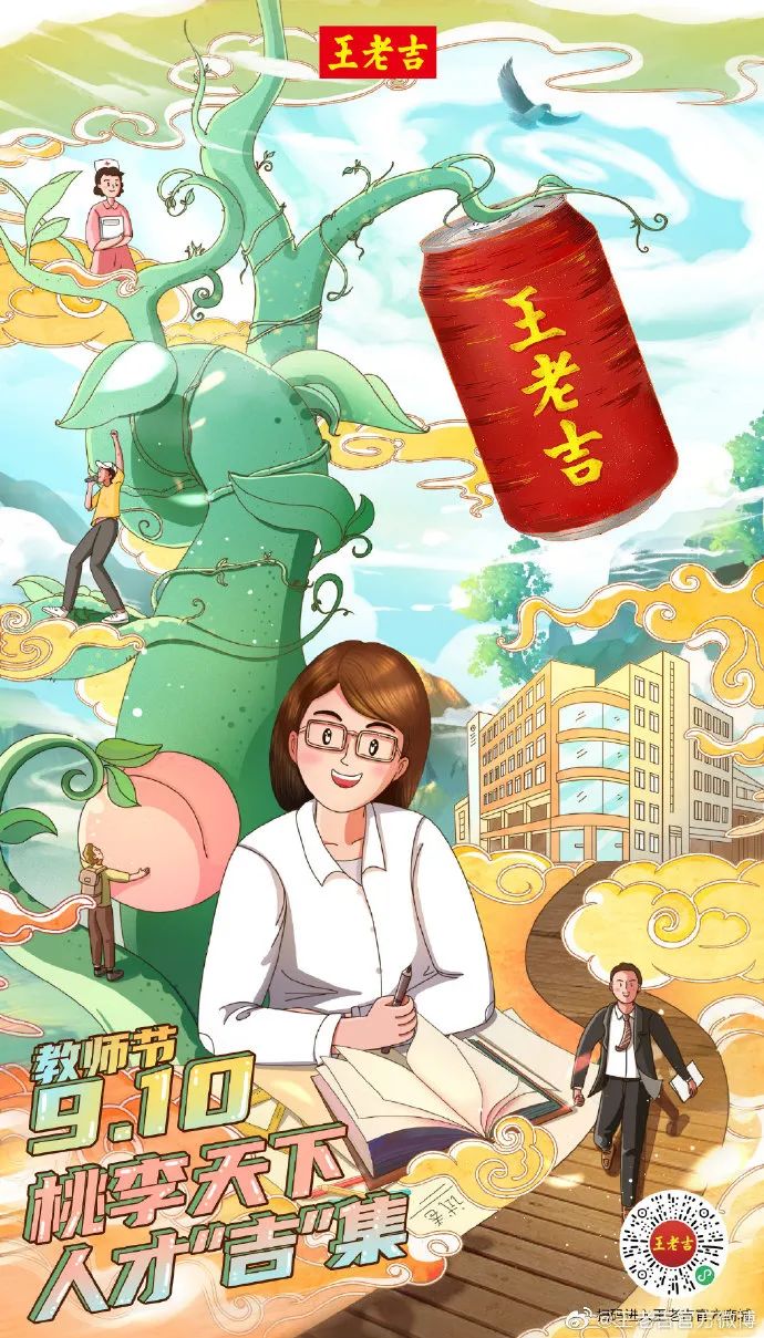 桃李不言,下自成蹊!老师用粉笔画出一条长长的筑梦阶梯,培育了一代又一代的优秀人才。今日#教师节#,王老吉祝全体老师教师节快乐!