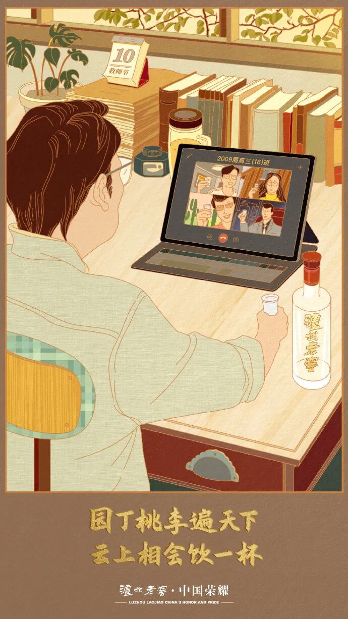 毕业多年,行走至天南海北,不忘谆谆教诲。一声号召,同学们线上齐聚,为您敬酒一杯。没赶上老师上网课,云敬酒请老师同酌。泸州老窖祝天下园丁#教师节#快乐!