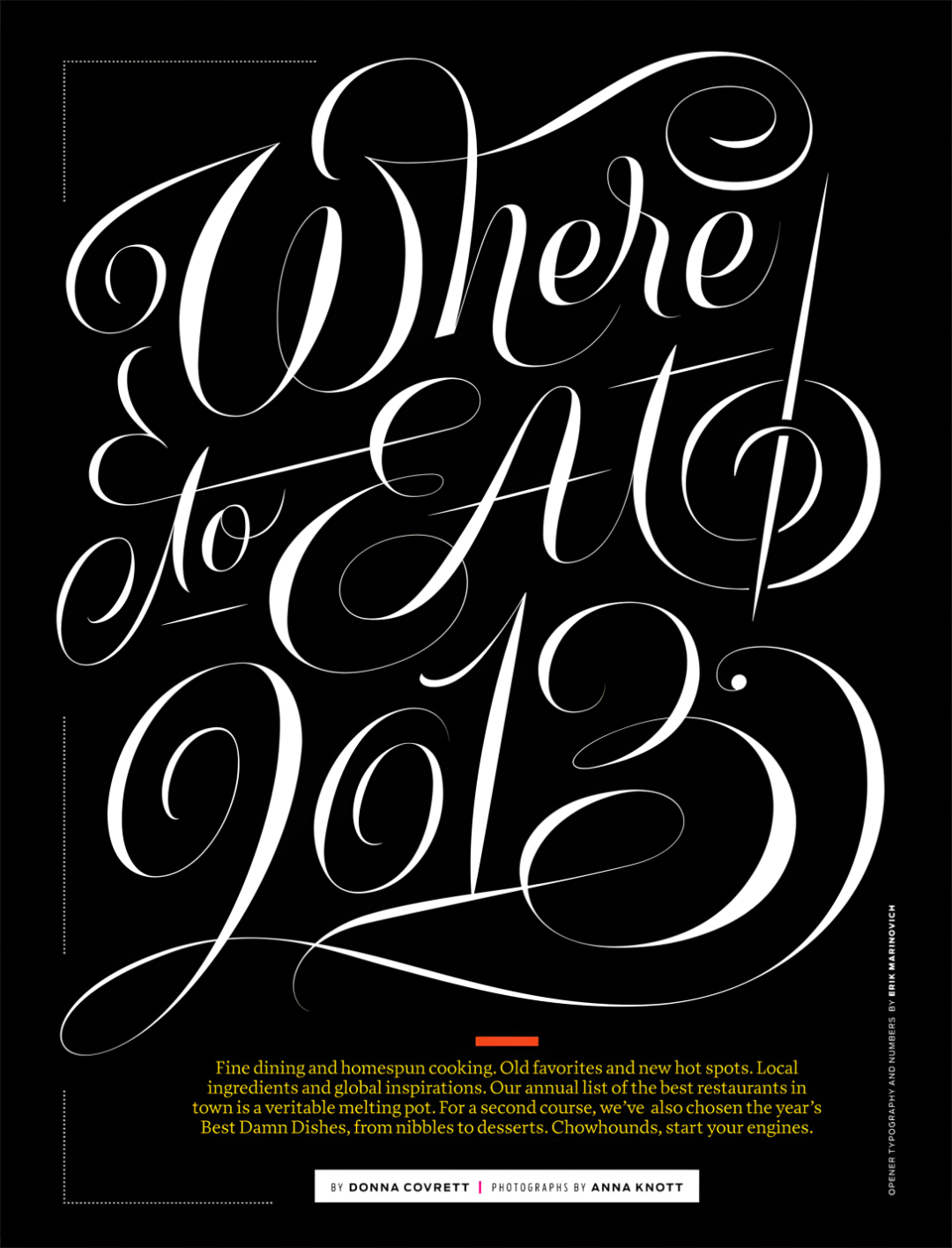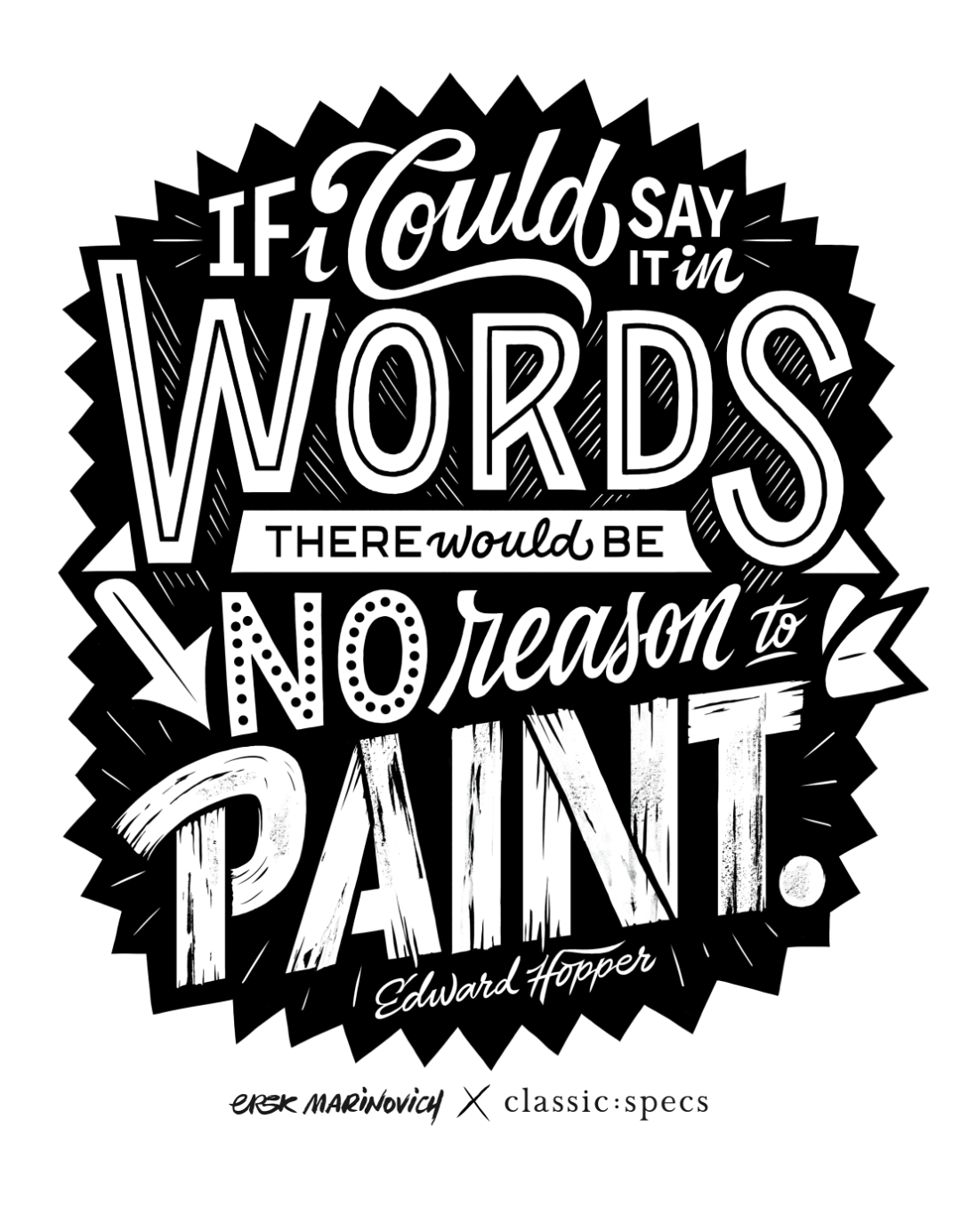 Erik Marinovich是一名旧金山的刻字艺术家和设计师,也是“类型之友”的联合创始人。自2009年以来,他为耐克、塔吉特、谷歌、希尔顿、Facebook、Sonos、Sharpie、The Criterion Collection、加拿大航空、Gap、福特汽车公司等著名品牌绘制过字母、标志和字体。2012年,他联合创立了一个名为Title Case的创意工作空间,负责举办研讨会和讲座。在客户工作、教学和兼职项目之间,你会发现他在路上推销Keep Fresh Stay Rad和Let 's Go Letter Hunting,这是普林斯顿建筑出版社出版的两本《类型之友》的新作品。