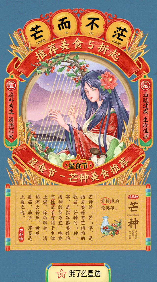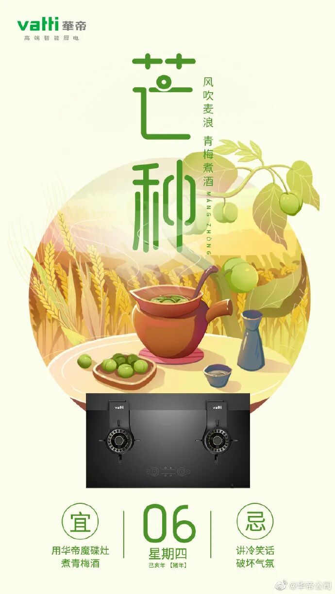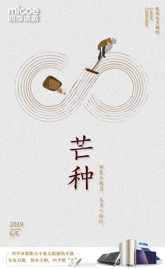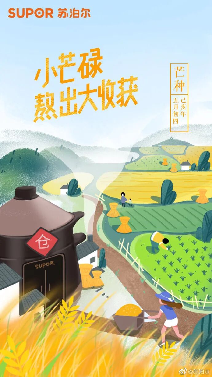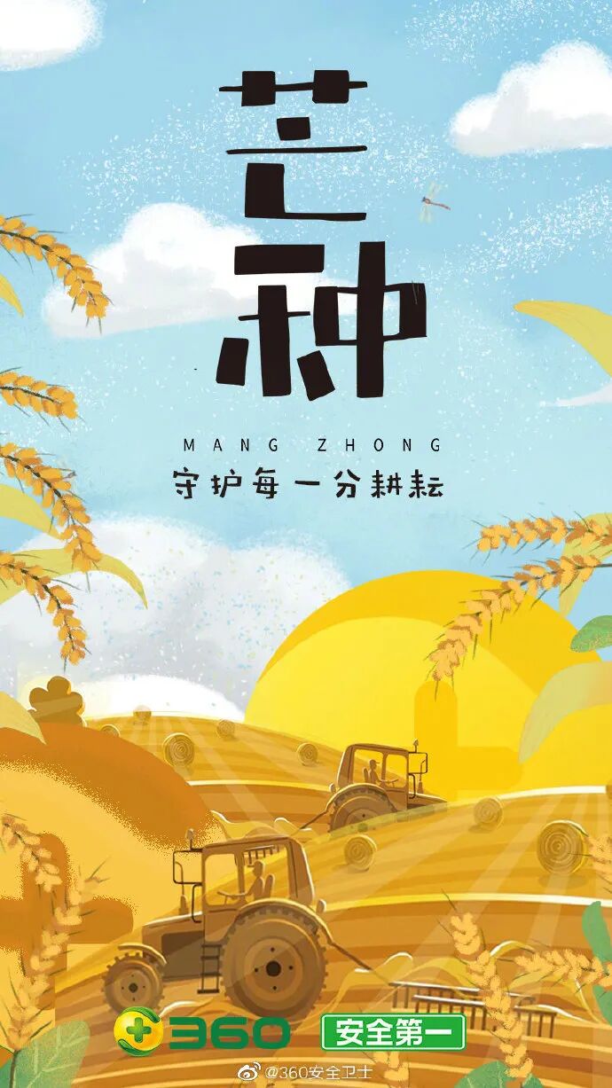 今日#芒种# ,二十四节气中的第9个节气,夏季的第三个节气。“芒种”也称“忙种”,预示着农民开始了忙碌的田间生活,也是仲夏时节的正式开始,防暑防晒都要好好准备起来了。#天猫24节气图#