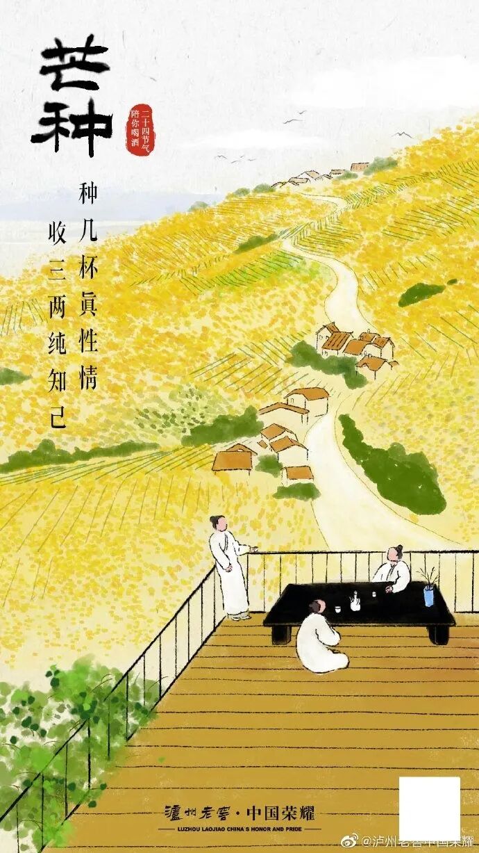 #泸州老窖用二十四节气陪你喝酒# 今日芒种,是夏季的第三个节气,代表仲夏时节的正式开始。这天之后,庄稼又得收又得种,农民们两头忙着,所以“芒种”也称“忙种”。芒种之时,他人都在奔忙劳作,我们不妨饮着小酒,铺上纸张,大笔一挥,说不定,也能写出一首旷世佳作呢。