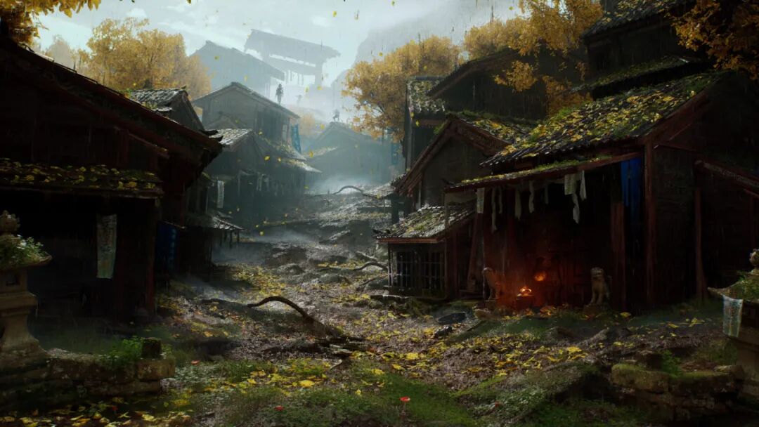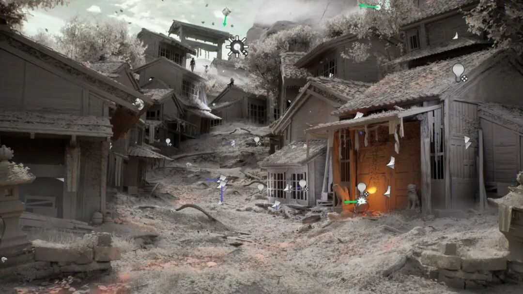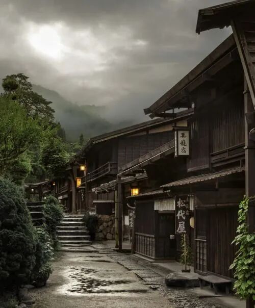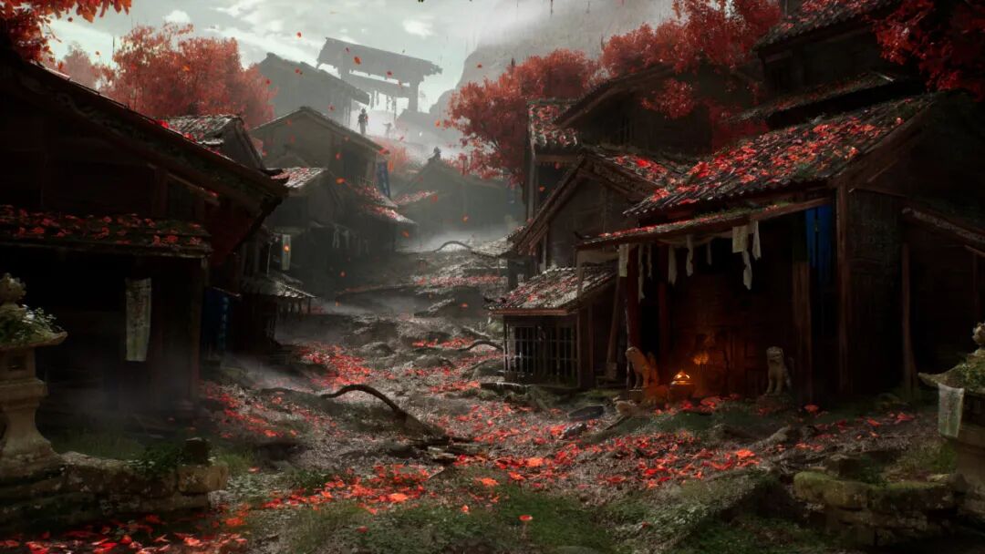 我明白了我想创作出一个废弃的村庄,也许是由于诸如战争或流行病之类的天灾人祸,有时需要休息或避雨的徒步旅行者会路过借宿,但是大自然现在已经完全接管了,由于日本树木绚丽的色彩,使它成为一个既美丽又令人不安的环境。(以下为部分参考图)