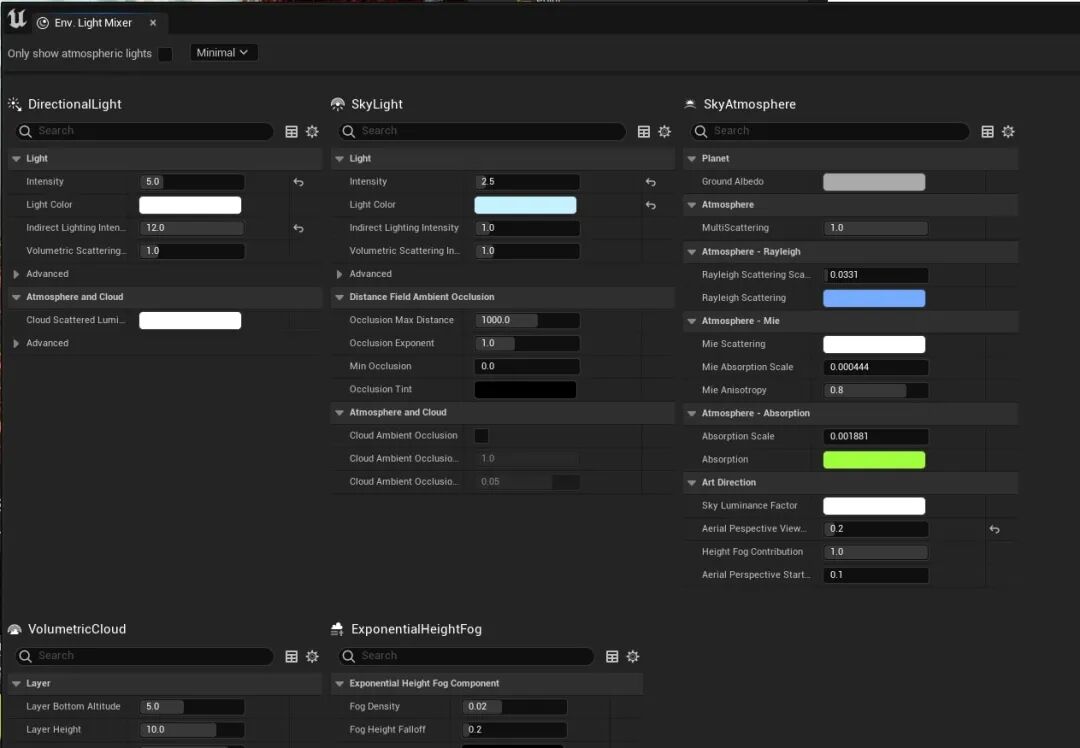这就是为什么我制作了不同的情景,因为我可以简单快速地实现它们。为了使我的工作更轻松并控制所有灯光,我使用了方便的环境光混合器,这是一个非常有用的工具,特别是对于像我这样容易在大纲和文件夹之间迷失方向的人。