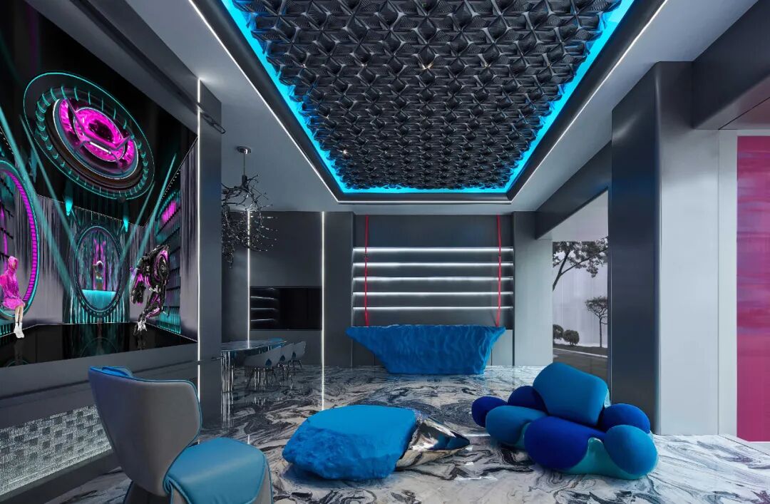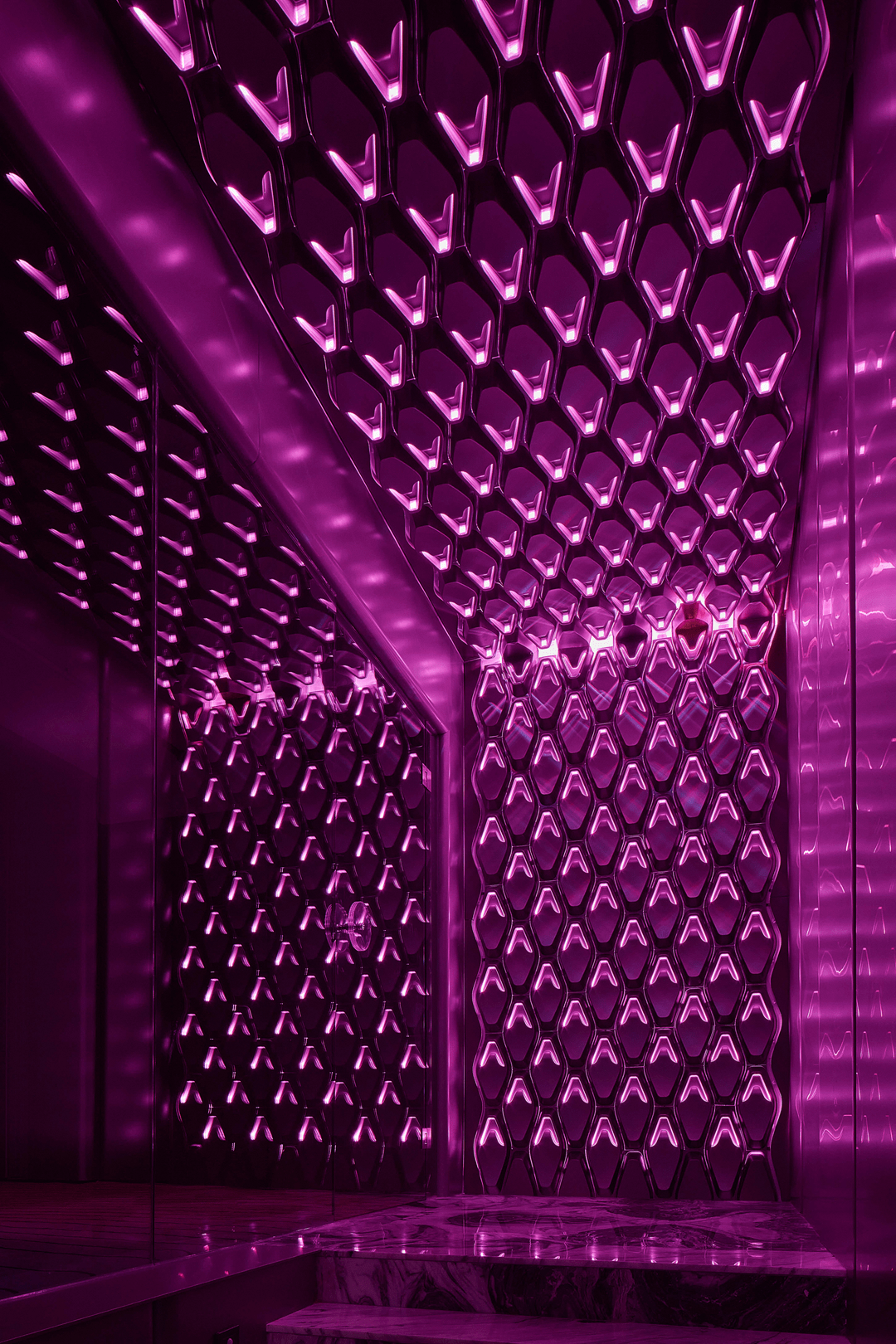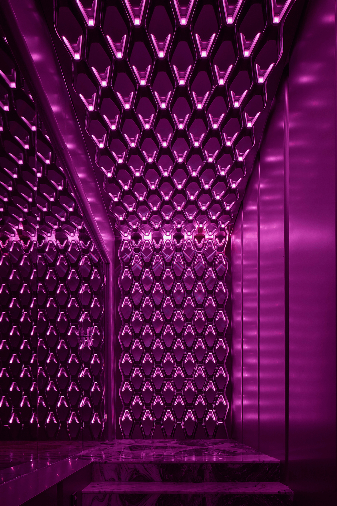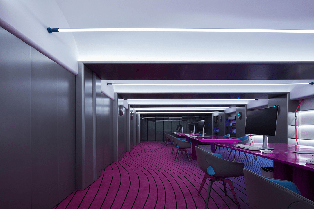 纯粹几何界面在色彩与灯光的烘托下,让人在进入的瞬间被热烈的气氛所包围,创作的激情、会议的头脑风暴、思维火花的碰撞,都在环境的熏陶下自然发酵。