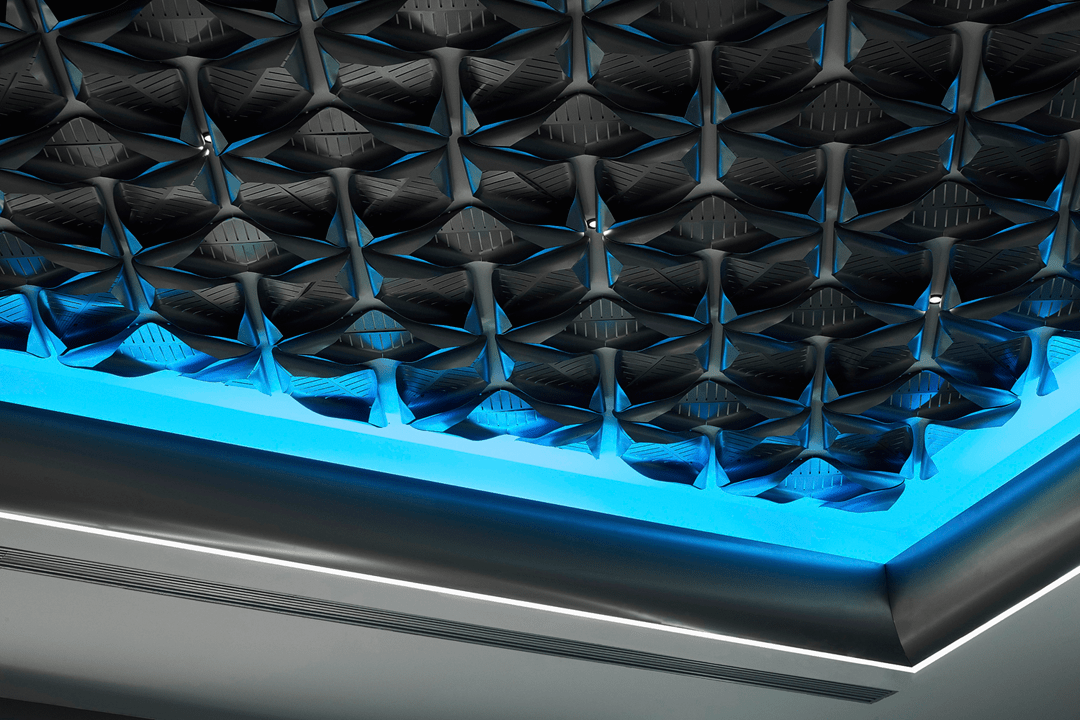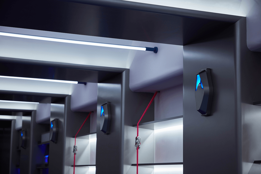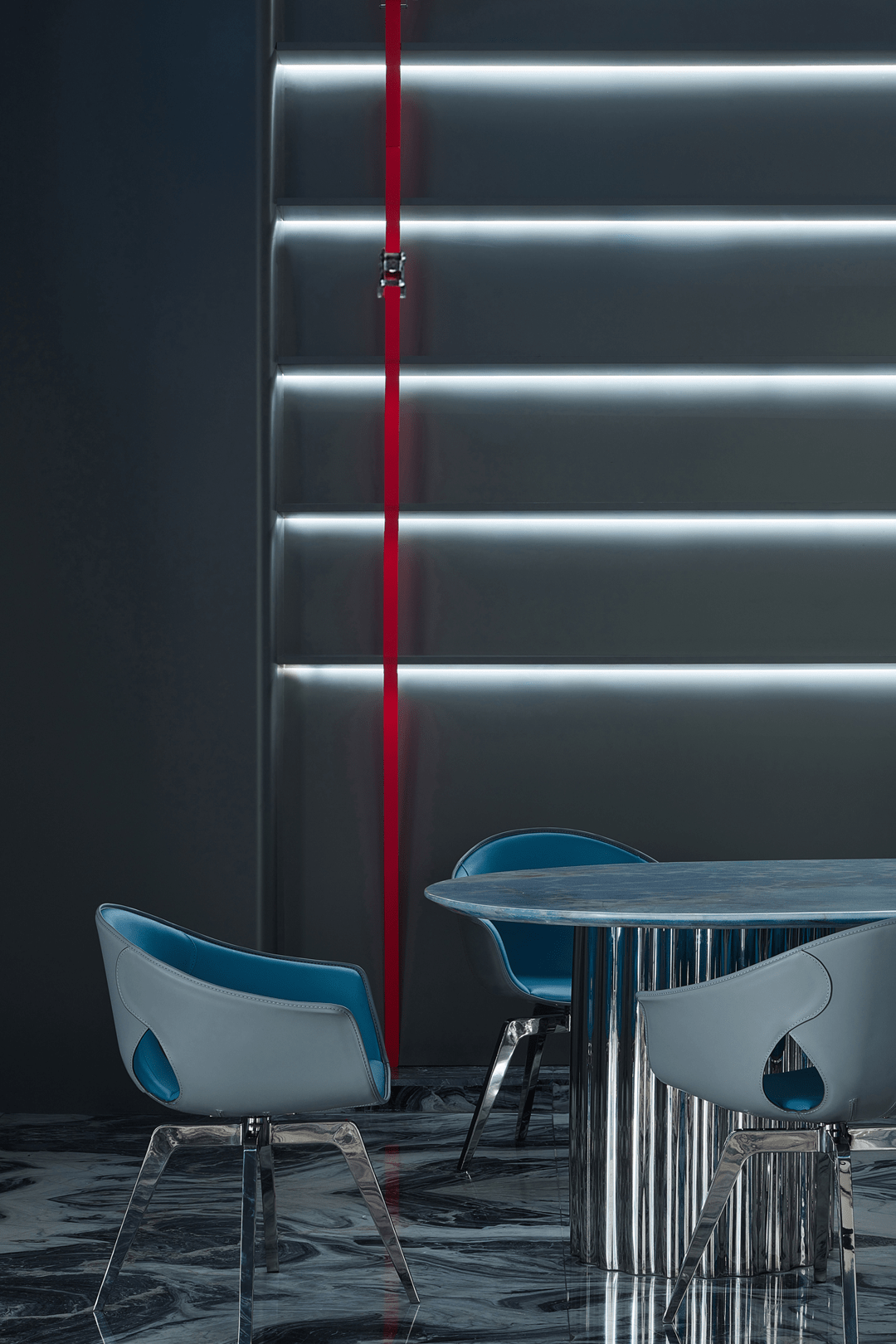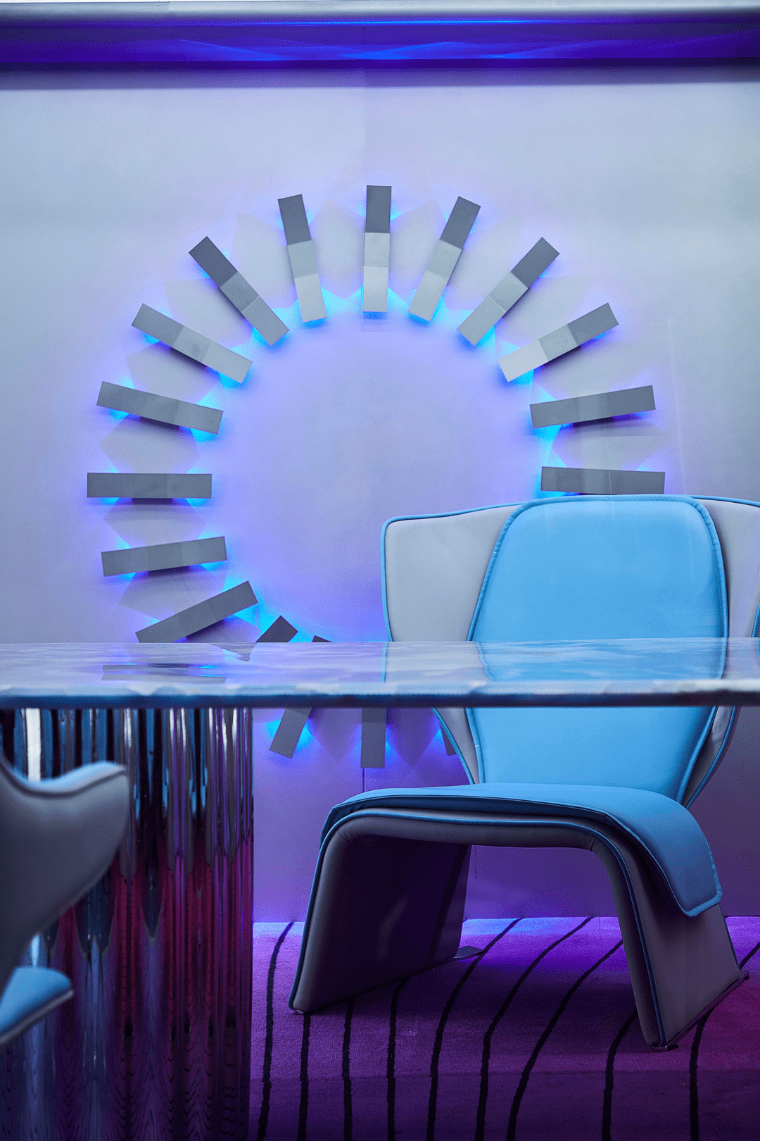 纯粹几何界面在色彩与灯光的烘托下,让人在进入的瞬间被热烈的气氛所包围,创作的激情、会议的头脑风暴、思维火花的碰撞,都在环境的熏陶下自然发酵。