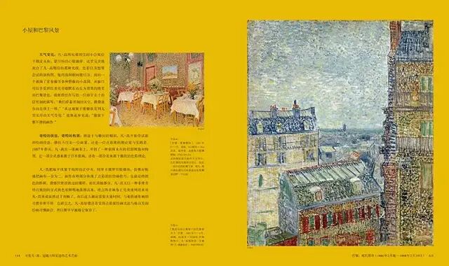 4.颜值超高,艺术感十足:这本书的封底采用了凡·高爱的颜色——黄色,以致敬凡·高这位天才艺术家。本书还原了原书的设计理念,保留了原书采用的黄色,一方面致敬凡·高,另一方面也想使读者从视觉上感受到凡·高绘画传递的明快而热烈的气氛。另外,图书的版式排布图文交汇,结构多变,每翻一页,都会给人丰富新鲜感。