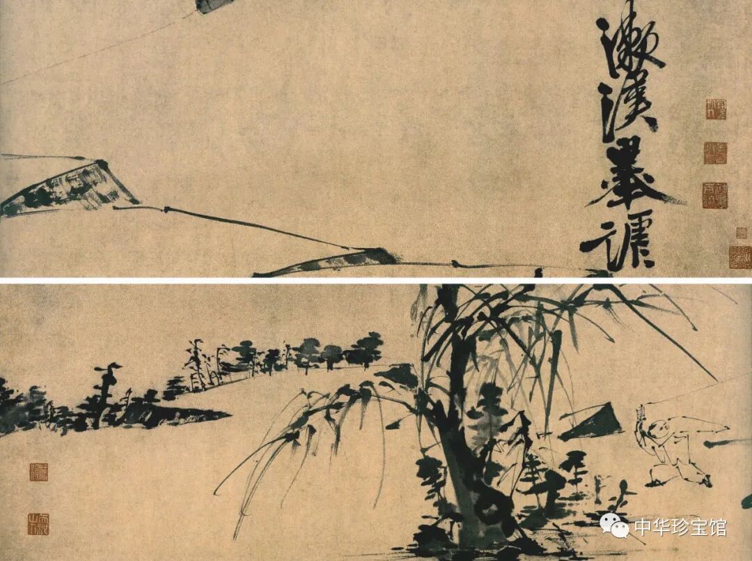 而说到“墨戏”,总和一个名字联系到一起,这就是明代天才画家徐渭。徐渭一生主要以水墨来作画,很少看到他的设色之作,而且从总体上看,都带有逸笔草草、墨色淋漓的特征,都可以说是墨戏之作。徐渭自己也屡有言及,如他说:“老夫游戏墨淋漓”、“墨中游戏老婆禅”。但他并不认为这样的作品是闲来无事的随意涂抹。他说:“世间无事无三昧,老来戏谑涂花卉。”他在墨戏中追求“三昧”——生命的智慧。如上海博物馆所藏的一幅四米多的徐渭《风鸢图》长卷,作于晚年,带有自传性的色彩,画心上徐渭题有“漱汉墨谑”四个大字,这真是一种“沉重的墨戏”。