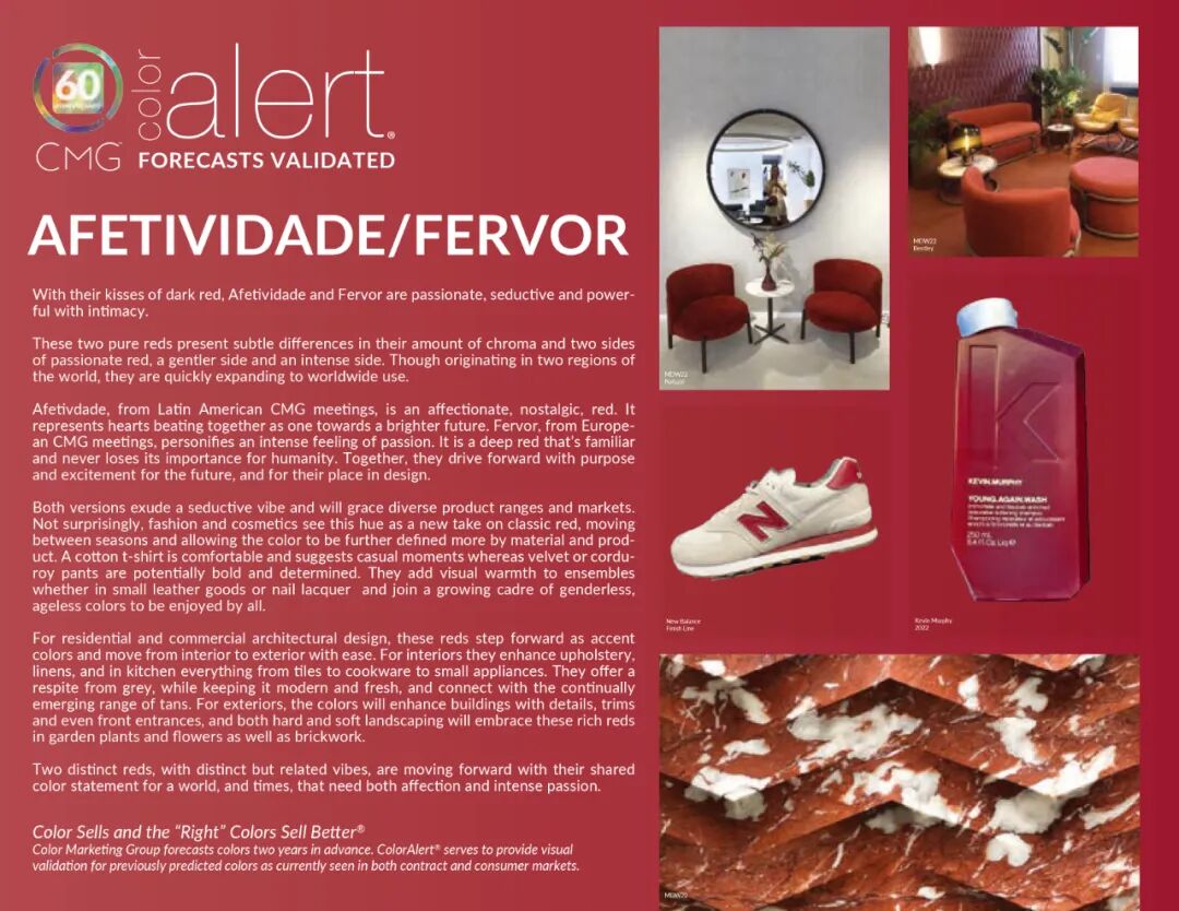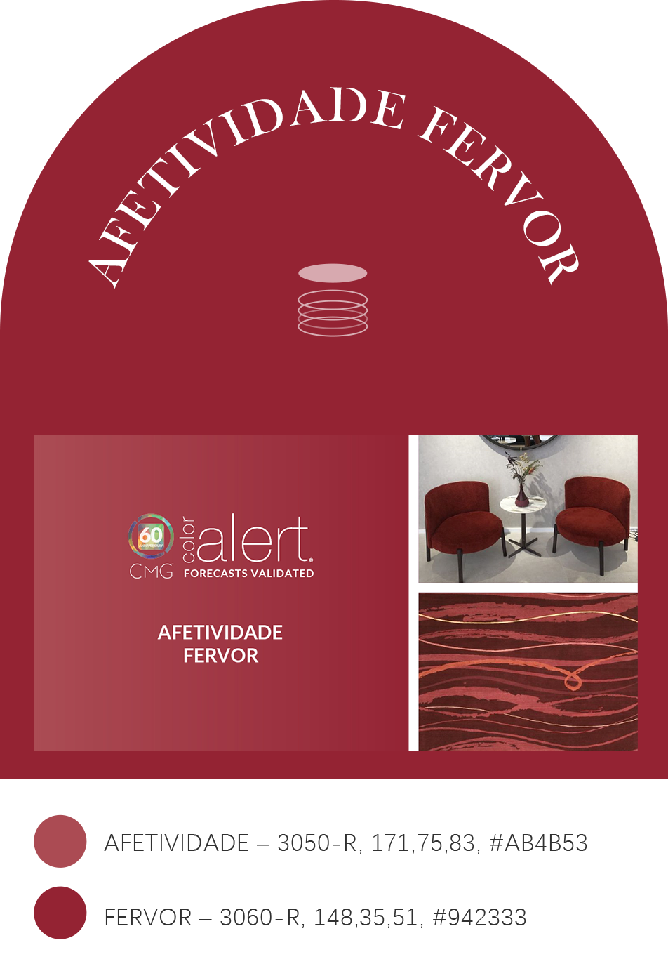 来自拉丁美洲CMG会议的Afetivdade是一种深情的、怀旧的红色,它代表着心在一起跳动,迈向更美好的未来。来自欧洲CMG会议的Fervor体现了强烈的激情,这是一种很熟悉的深红色,永远不会失去它对人类的重要性。