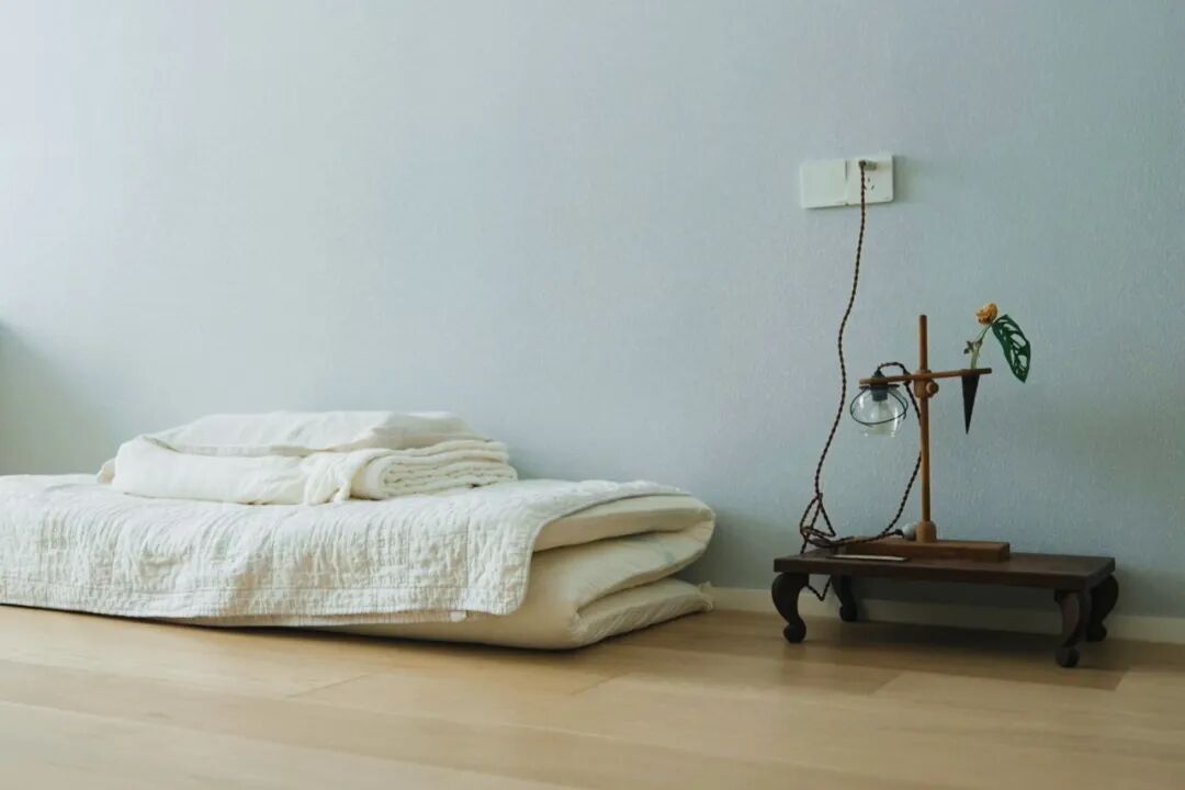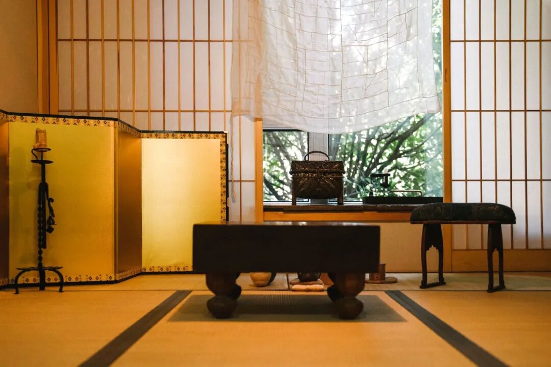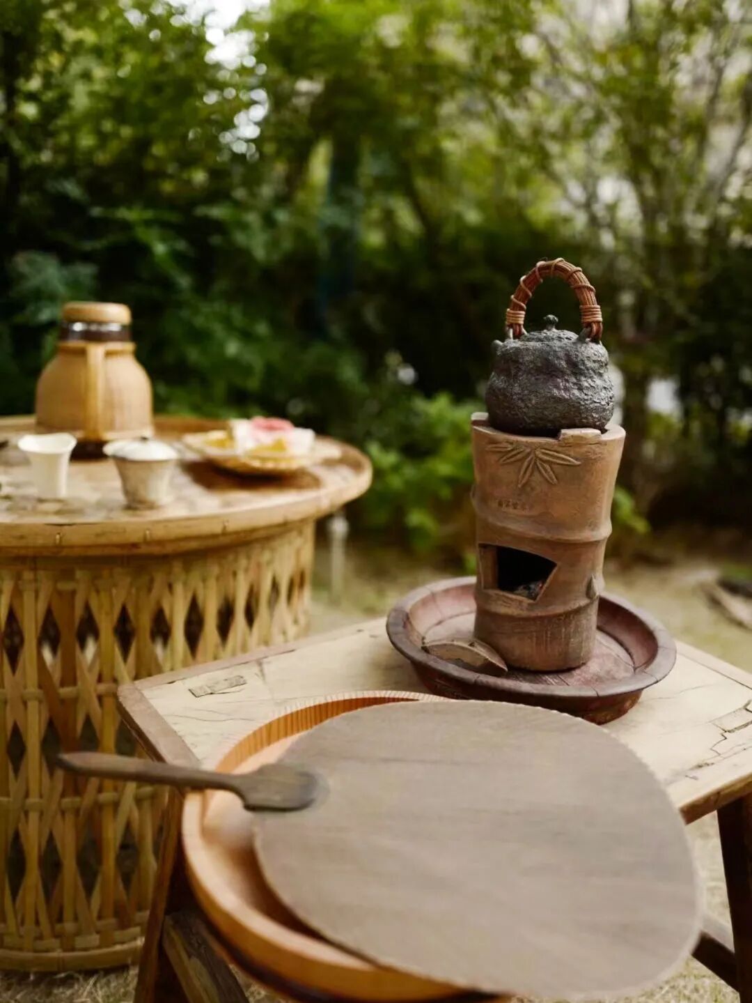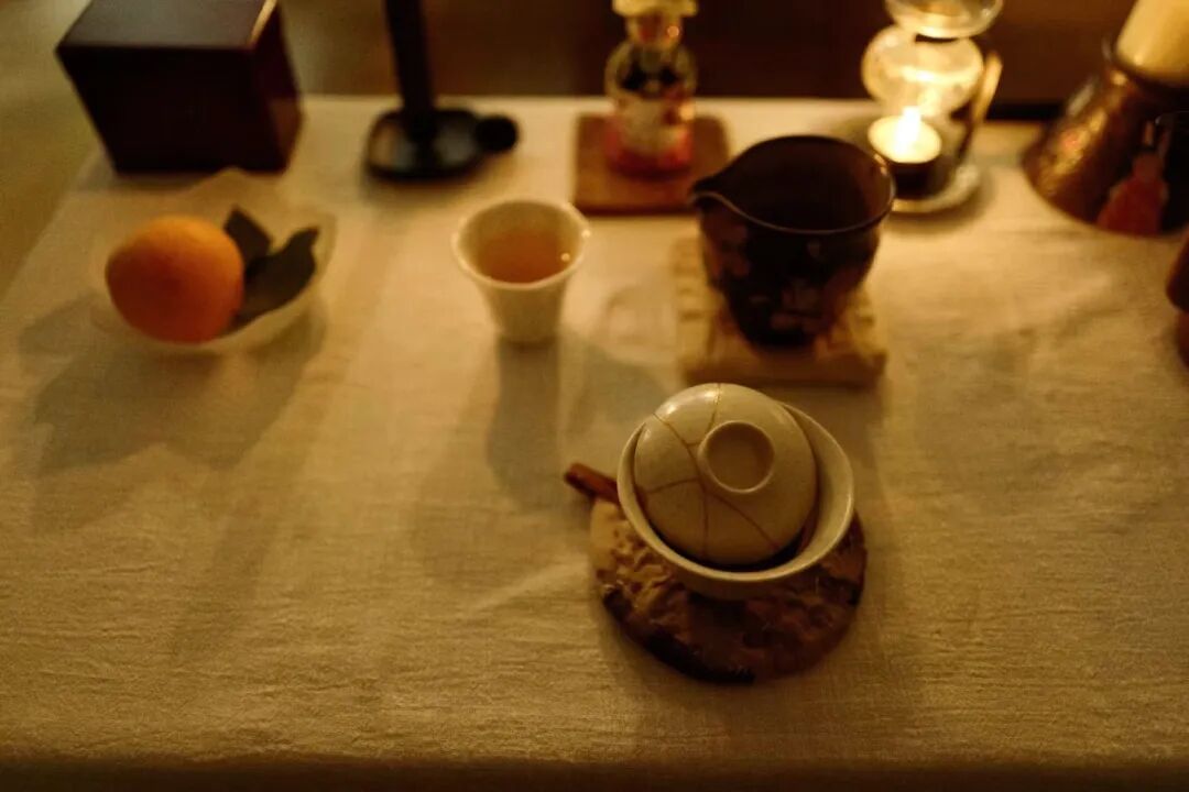 屋子朝北本来是一间卧室,被我改成了茶室,现在成了我最喜欢的空间之一。家里的院子环了外墙半圈,茶室窗外正好是常绿的树木,挡住了光线,所以更加暗、温度也偏低,坐在里面甚至会有一种森林木屋的错觉。