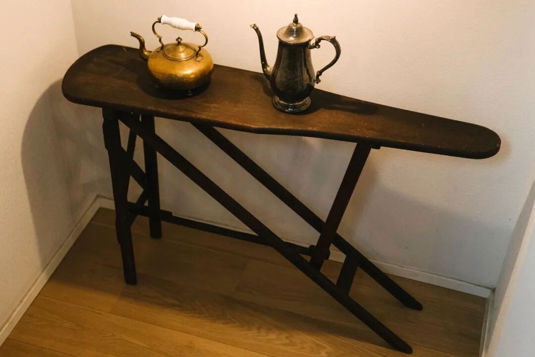 还有一张是民国的折叠小桌子,折起来的时候非常小,可以当成一个花架或陈列架;展开的时候就可以当成饭桌,现在好像很少见到这样的设计了。