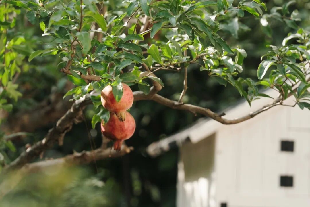 我种了各种月季、铁线莲、绣球,还有一些果树。每年四五月,是院子最姹紫嫣红的时候。现在这个季节,就只剩下石榴挂在枝头啦,也很好看,好像一个个小灯笼。