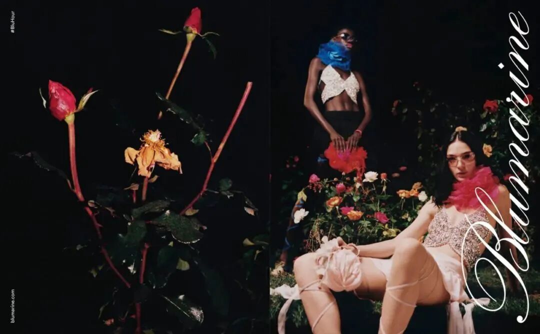 BLUMARINE 的世界传递着诱惑、魅力和强大的活力。透过年代感十足的复古色调,以及放大的肢体动作呈现,捕捉千禧辣妹的动感一刻。