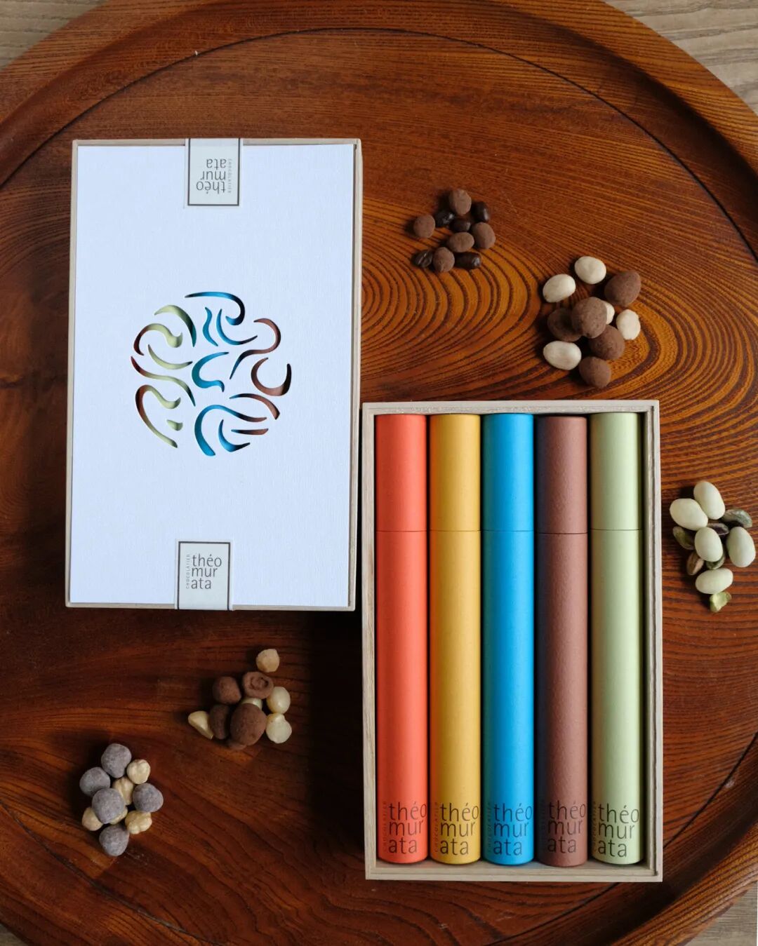 设计讲解:作为一家巧克力口味博物馆,Nibbo 为走进商店的巧克力爱好者提供了丰富而独特的品尝体验。因此,该设计围绕着将巧克力定位为顾客想要逐一尝试的精美商品集合。包装中还包括带有详细风味说明和相应风味编号的卡片,旨在让人想起博物馆中的物品描述。作为视觉的点睛之笔,外容器也被设计成形态上类似于迷你收藏夹。