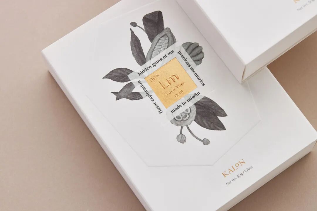 设计讲解:开发茶香的过程就像挖掘稀有宝石。为体现品牌形象,该包装以元素周期表为视觉灵感,为每种不同的宝石香气设置了唯一的编号和面额,建立了完整的茶香体系。