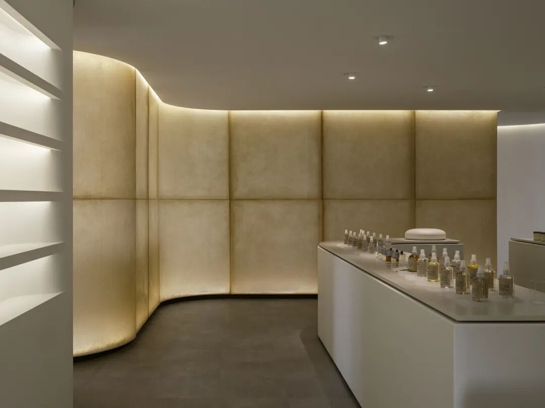 设计通过去除所有的设计元素,创造出一个只剩下记忆的残香的空间,空间设计专注于用材料特性将无形的香味空间化和视觉化。