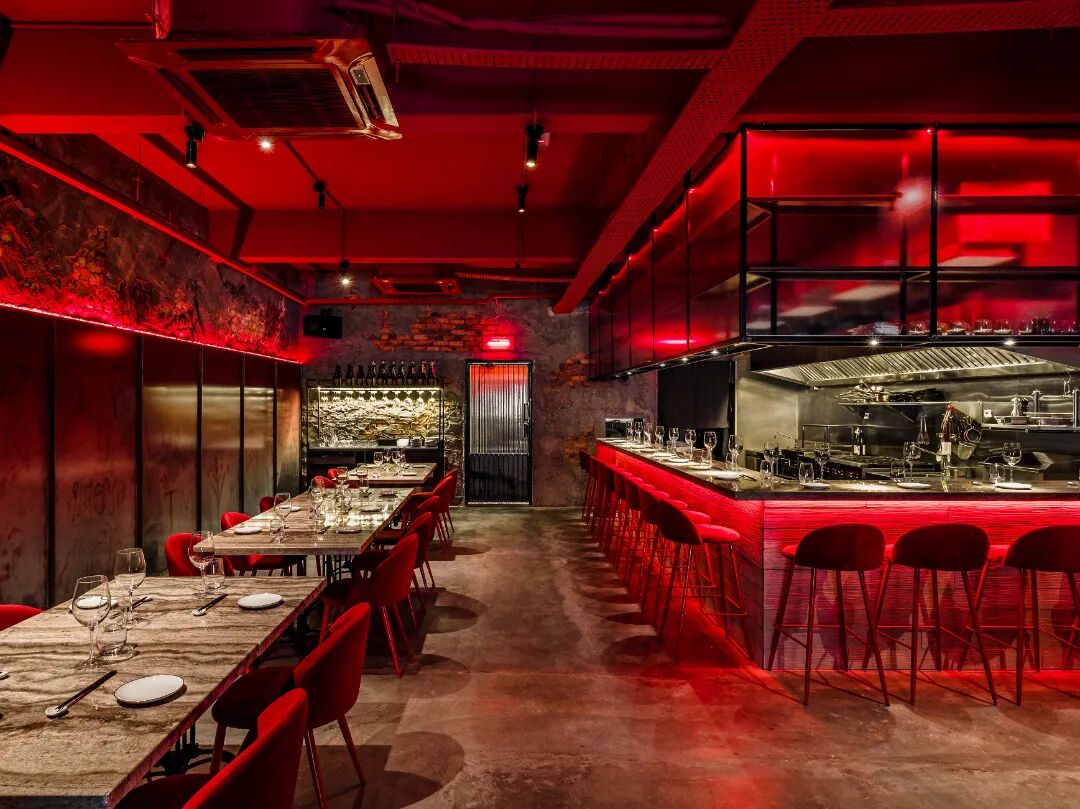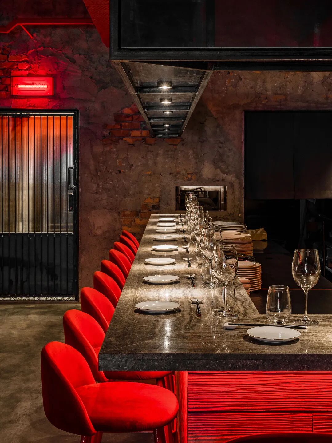 在主餐厅,有两种类型的座位。一种是吧台座位,就坐在开放式厨房的正前方,用户可以近距离欣赏厨师在烹饪时带来的视觉盛宴。