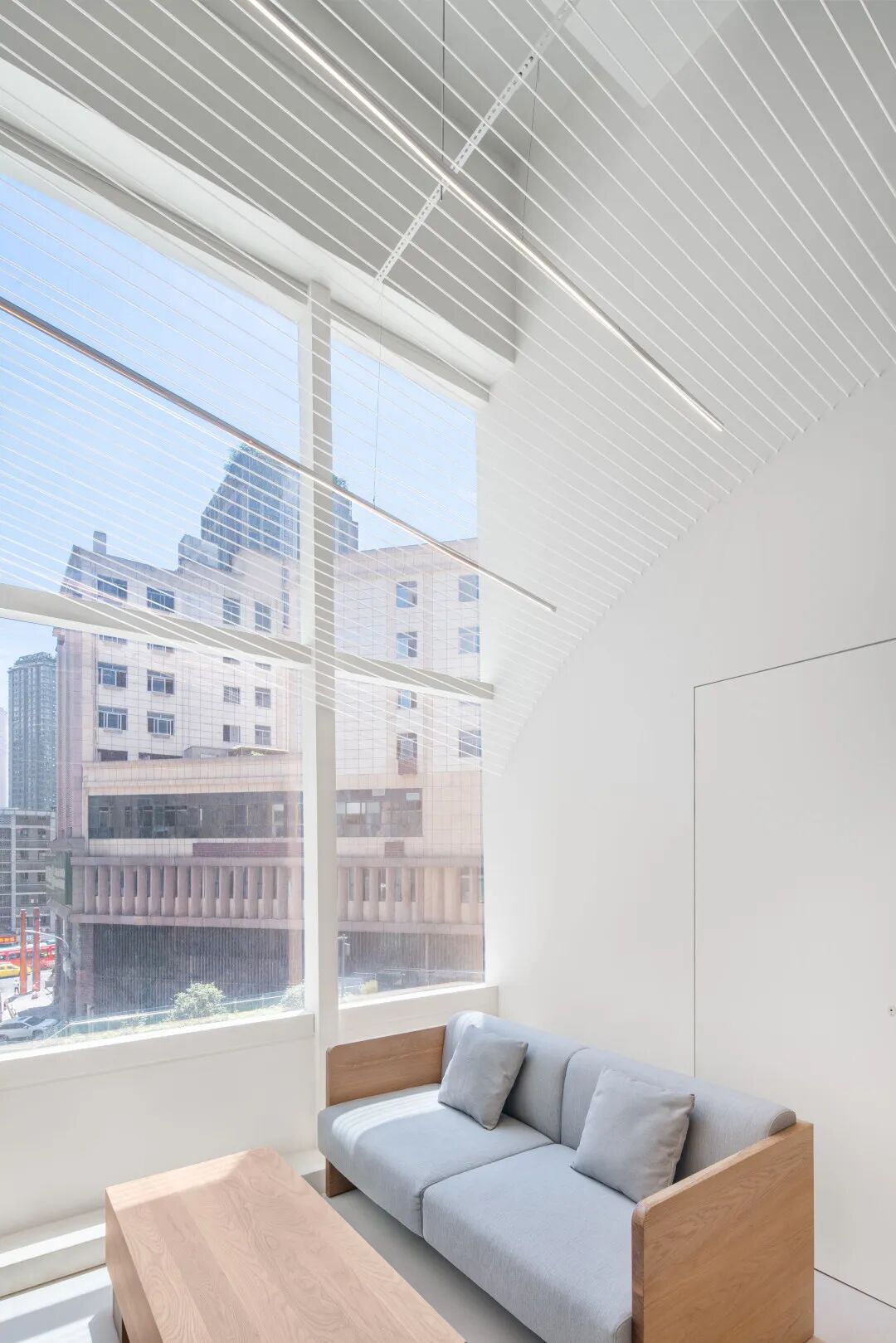建筑立面的铝条不仅提供多种照明功能,更可遮挡过多的日晒维持室内舒适的采光效果,而具备灵活性与弹性的展览空间,可满足多种展示、接待、活动需求。在顶层空间,围合景观有如一座漂浮的小岛,搭配季节性植物塑造一处可供萤火虫复育的城市生态场所。