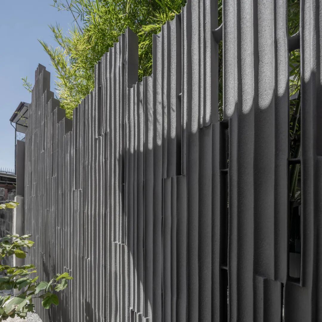 该项目与泰国著名钢管生产家Pacific Pipe联手,将钢管作为单元砖块,打造数个高度和宽度接近4米的 "钢管砖" ,兼具遮阳采光与对流通风之微气候效果;设计将每一根钢管对切再用于单元两面,从而发挥5个相异直径的管材整合在同个单元,以旋转和镜射方式创造出多样化的组合效果并减少建筑垃圾的产生以达到环保效果。