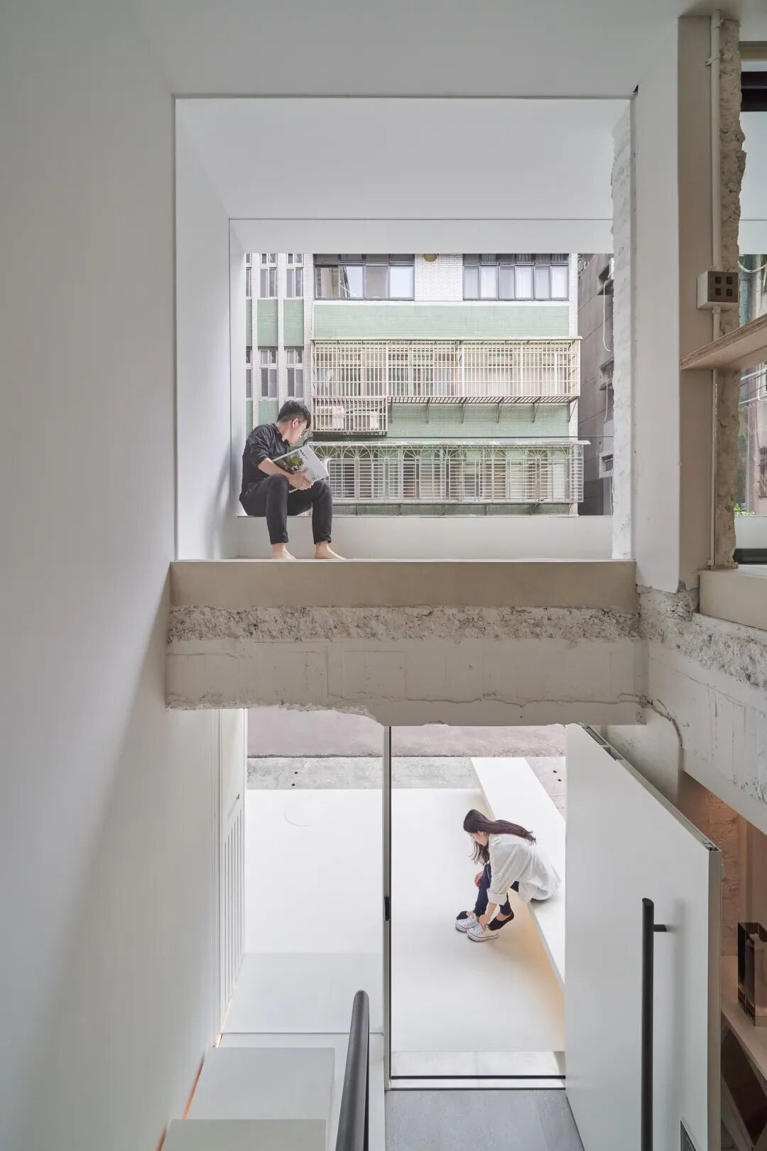 这原是台北市一间具有50年的老房子,郑明辉先生不以常见的使用最大化的观念来进规划,而是大胆地以内凹方式进行改造升级,在出入口处建构一处可暂时小憩的地带,与之连带形成巷道内的缓冲空间,同步缓解城市巷道的拥挤感。
