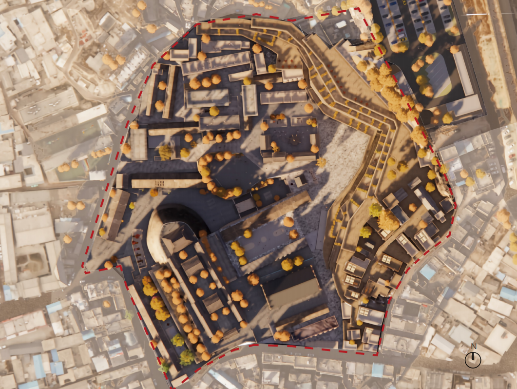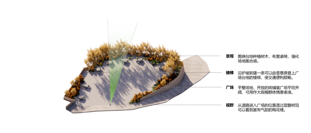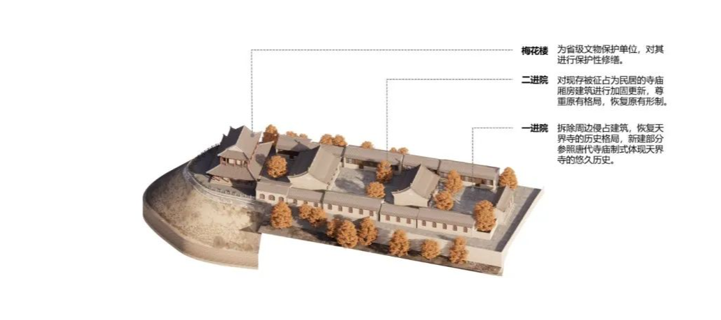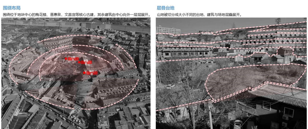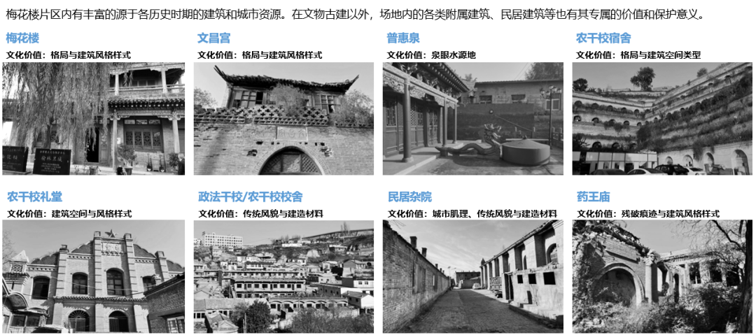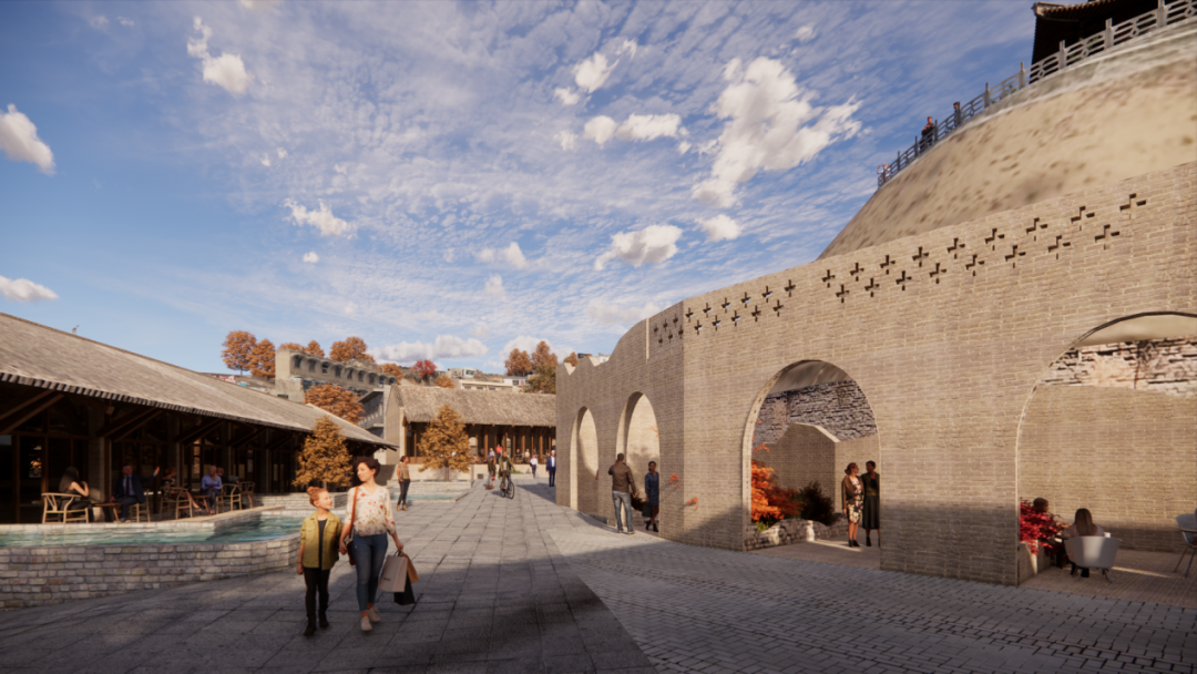 梅花楼片区是榆林古城内最重要的历史节点之一,也是榆林城市的发源地。片区不仅内有梅花楼、普惠泉、老农干校窑洞、苏联援建礼堂等兼具历史价值与风貌特色的建筑元素,并与古城东门振武门有非常好的对景关系,堪称榆林古城内的宝藏地带。本次更新希望在严格遵守文物保护规划的前提下,以创新的方式寻求既能够保护并激活梅花楼片区历史价值,又能塑造古城风貌文化展示地的优秀方案,带动古城整体发展的同时助力榆林打造国内古城更新典范及全国历史文化名城标杆项目。