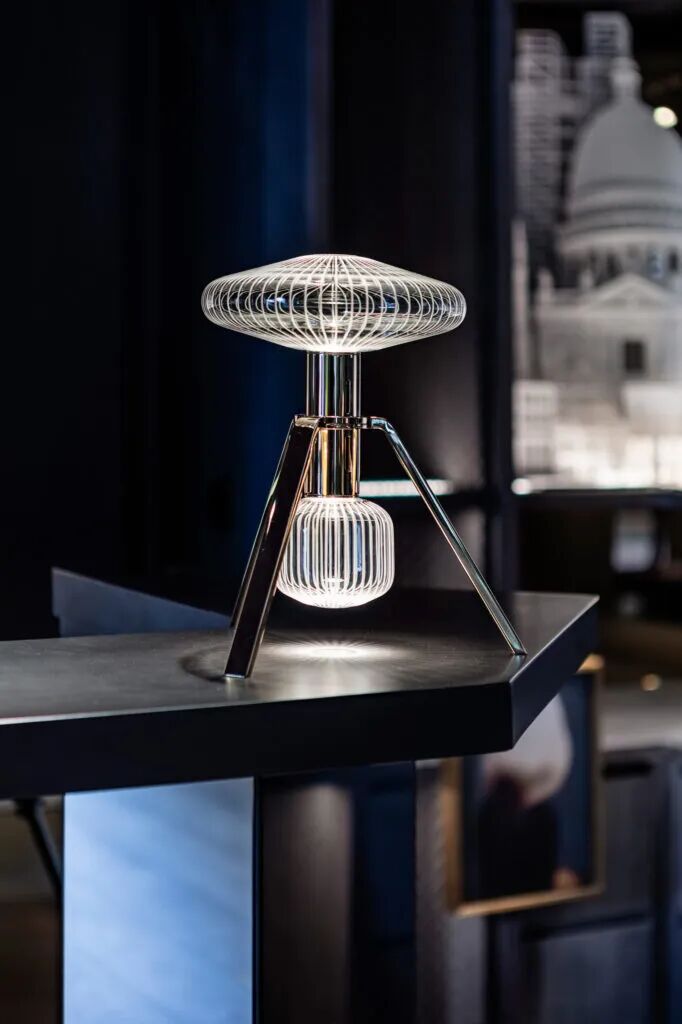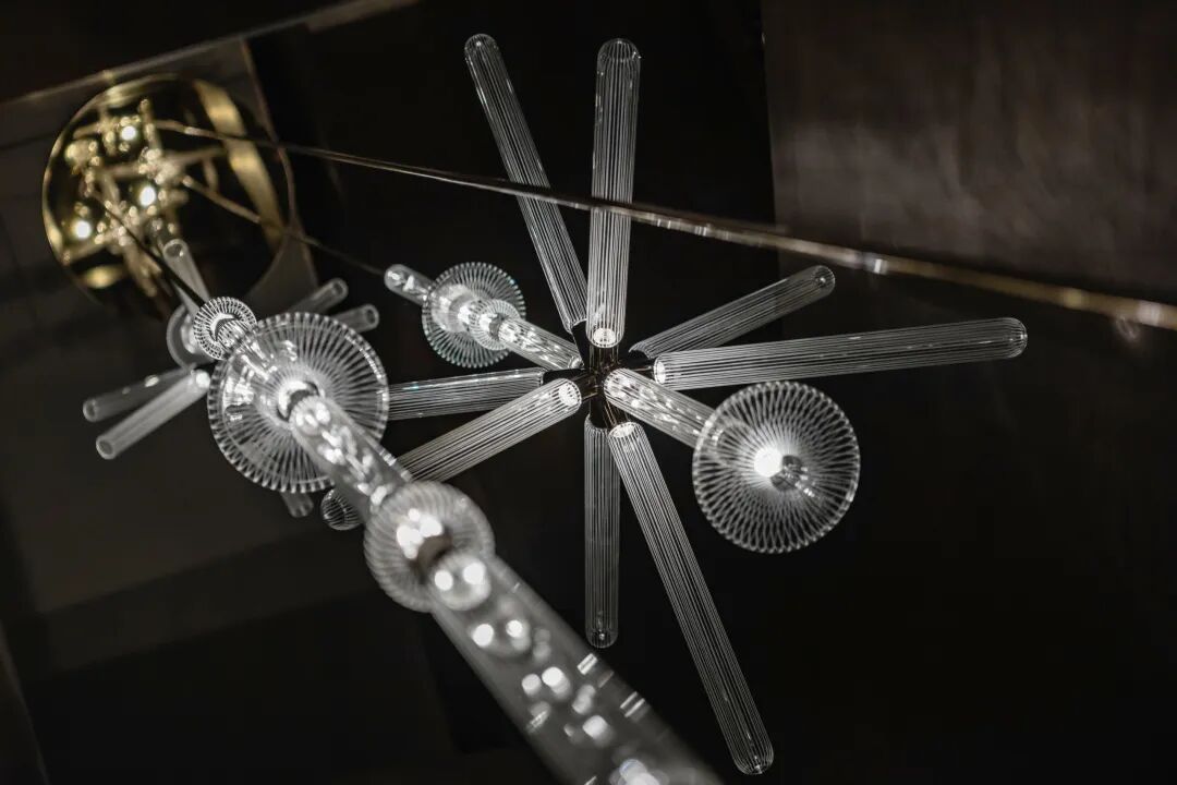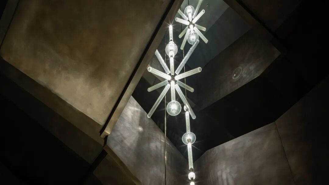 A:雅布:最初我们为这个产品设计项目构思了五种不同的概念,和他们之间有戏剧性的互动,既:非结构化的吹制玻璃、悬浮的熔融玻璃球、精致的金属框架、纹样的堆叠、带纹理的玻璃。凭借 Lasvit 精湛的工艺,我们深知,通过此次合作,我们可以创造出真正意义上“新”的东西。为此,我们探索了多种可能性。我们今天所讨论的 Cipher(“密文”)系列,直到我们在布拉格复查打样模型的时候才得以定调,我们还拥有了一个“这就对了!”。虽然当时呈现在我们面前的模型看起来已经很棒了,但是它并没有完全契合初始设计时的愿景和精髓。就在我拿起一个样品并放在光源上时,那个“这就对了!”的感觉也悄然而至。当时美的共鸣和冲击是立竿见影的——这正是我们希望实现的。光影以锐利的线条射出,在墙壁上投射出精准的线条和阴影,这是一种不期而遇的美。
