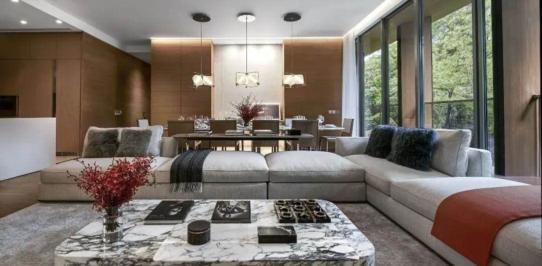 The whole residence has a certain advantage on the floor height, you can fully appreciate the natural scenery of the whole city, the open way between the shade of the trees, the leisure space reveals the fresh taste of nature, but also can make their mood become more transparent and comfortable.