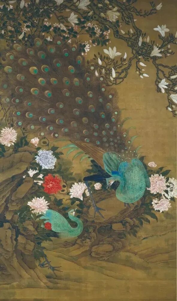 在众多山水画中,还展出了一件花鸟画作品——虞沅的《玉堂富贵图》。虞沅出生在扬州,也曾经北上京师进行创作。