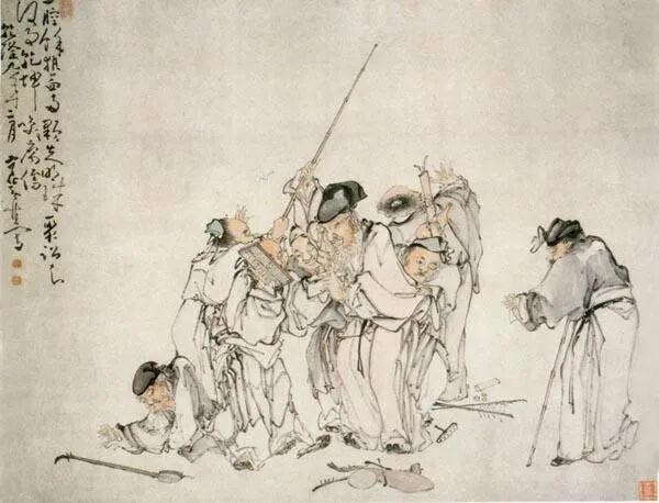 ▲ 群盲聚讼人物图 黄慎
