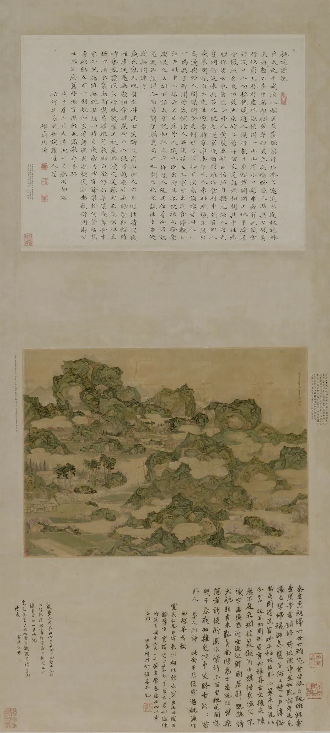 顾符稹《桃花源记图》构思巧妙,在有限的空间,表现了无限的意境。