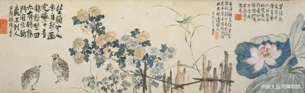 此外还展出了罗聘《莨谷图》、郑燮《荆棘丛兰图卷》、边寿民《芦雁图》、李方膺《鲂鲤贯柳图》等。