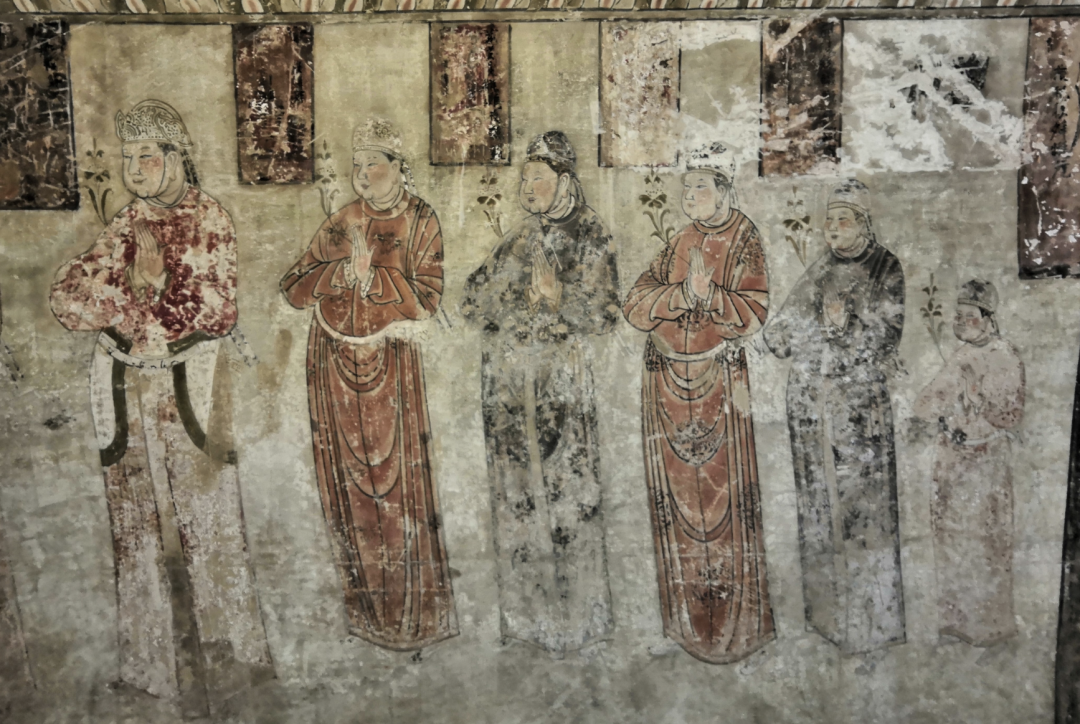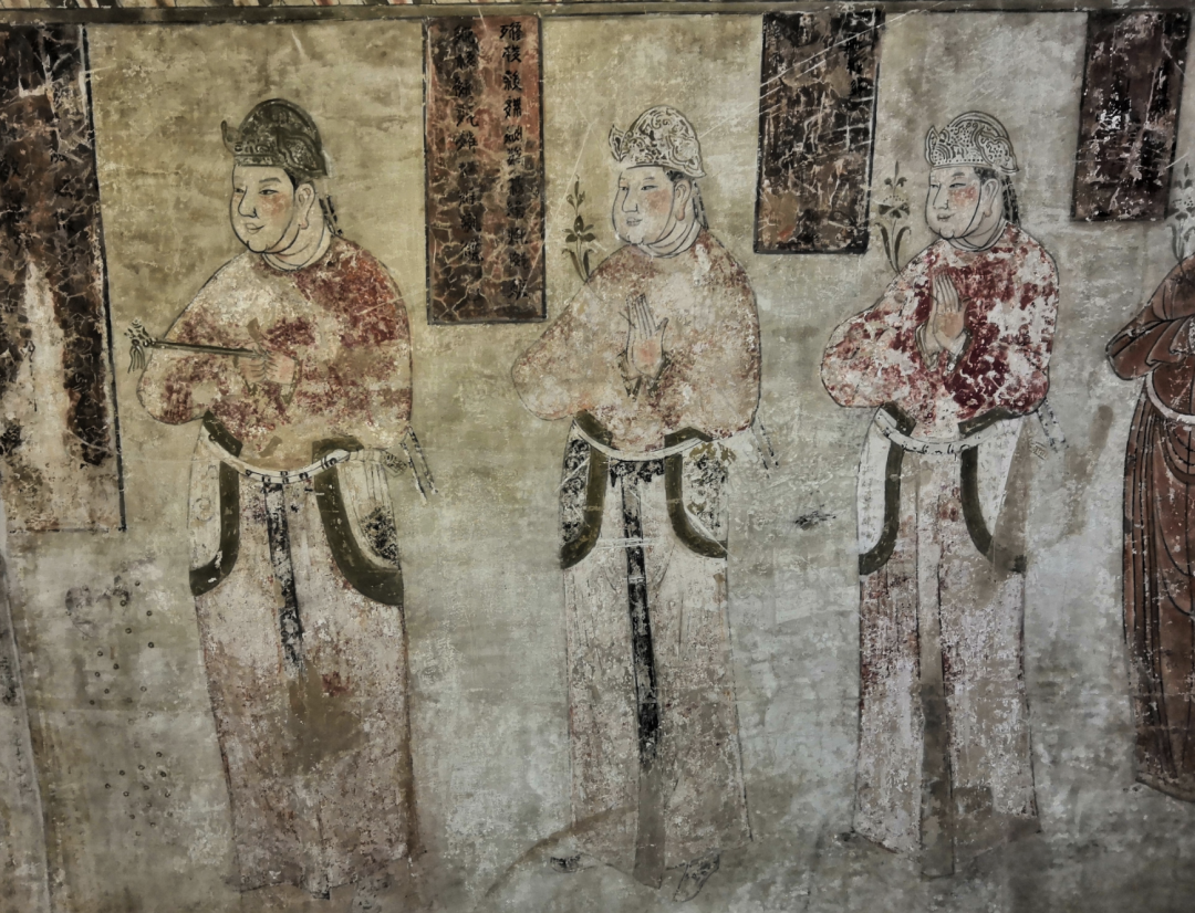 向赵本人,向赵的儿子加上向赵的孙子,他们一家子被画到了主供养人的位置,跟窟主站在一起。这就表明了窟主其实是想拍御林军统领的大内统领的马屁,因为他同时又是御史官,这个我觉得是特别有意思的一个构成,本来你说这个主供养人窟主,他身后应该是排列他自己的儿子或者说他的兄弟这些重要的家族的人物。结果不是,他排的是中央来的高官。