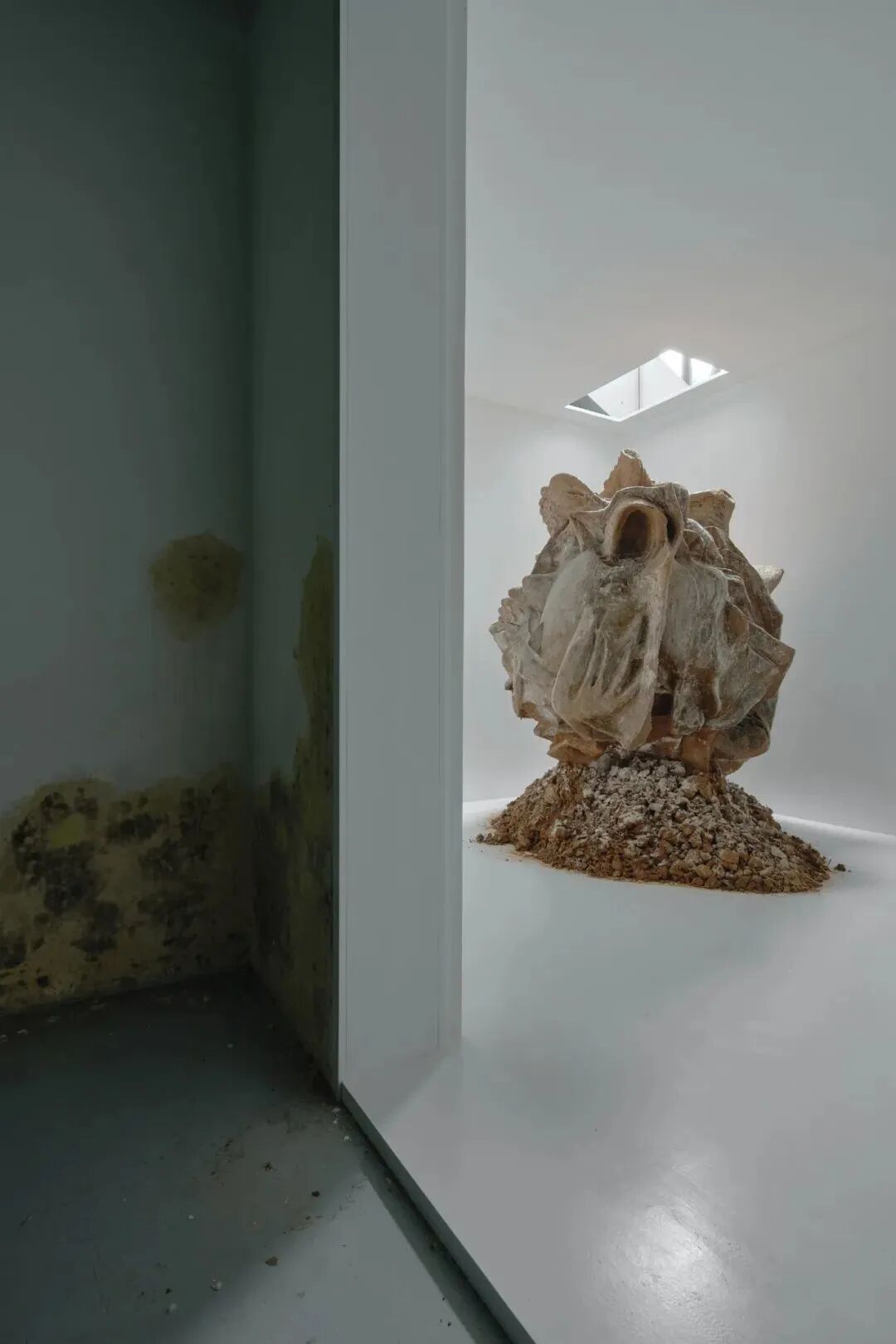 展览现场放置了众多像“雕塑”一样的作品,这些作品看起来像是石头、或者建筑亦或者不可名状的物体,同时展览呈现的绘画作品中,可以看到史前生物以及他们生活的环境,整个展场就像是一个考古现场,我们仿佛回到了远古时代,就像艺术家讲到的,远古时期,许多细胞为了躲避当时地球环境中过多的氧气,藏进泥浆中厌氧菌的内部以获取生存的空间。今天同样如此,这些作品的任务就是用美学的形式把这种无法被知识完全抵达的真实性展现出来。